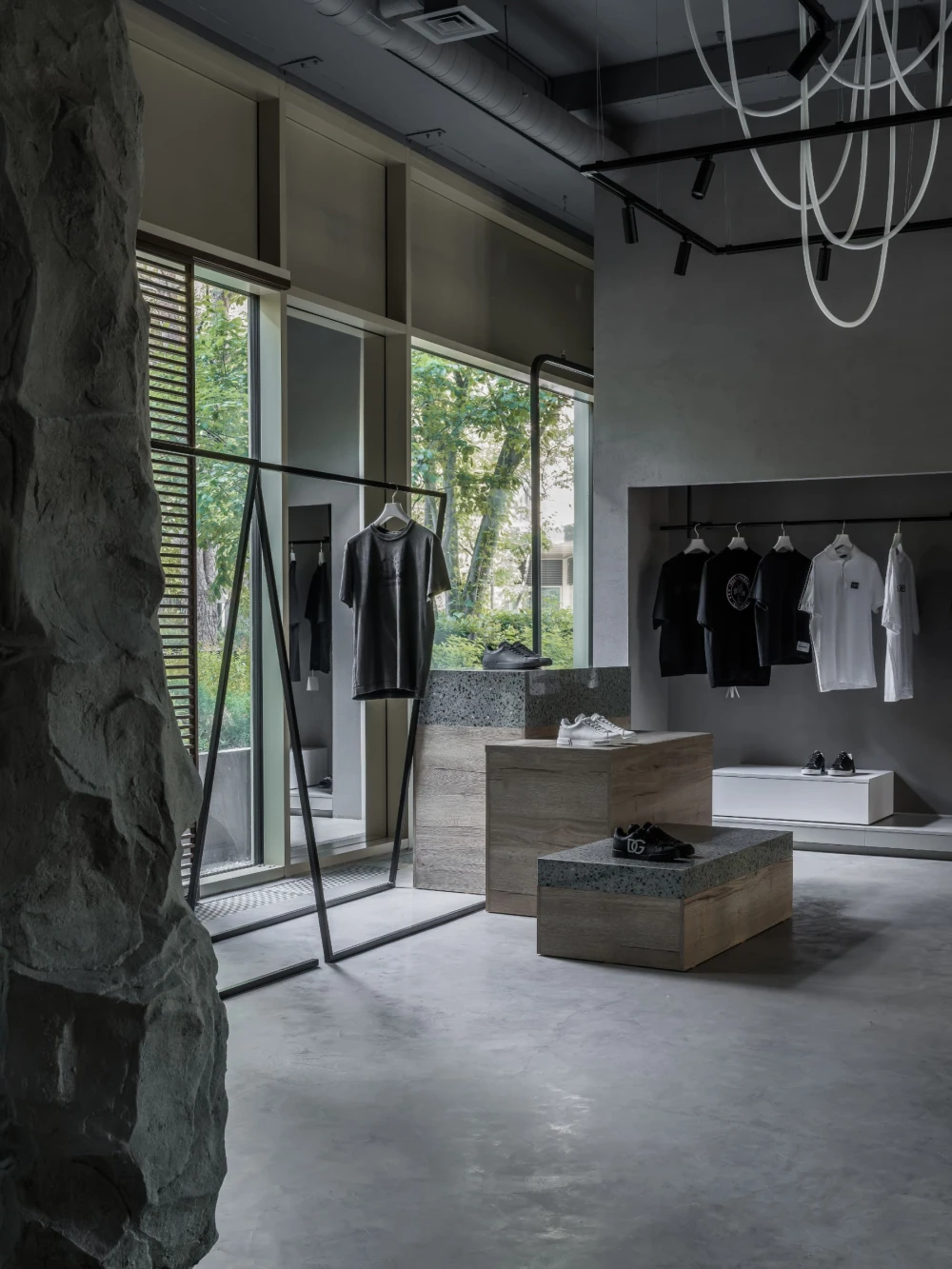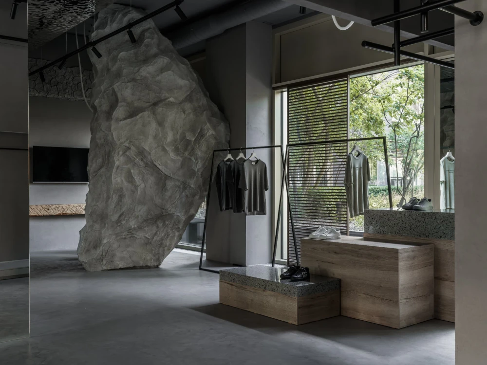 Бутик итальянской одежды с декоративной скалой: проект студии Maria-Art в Тюмени