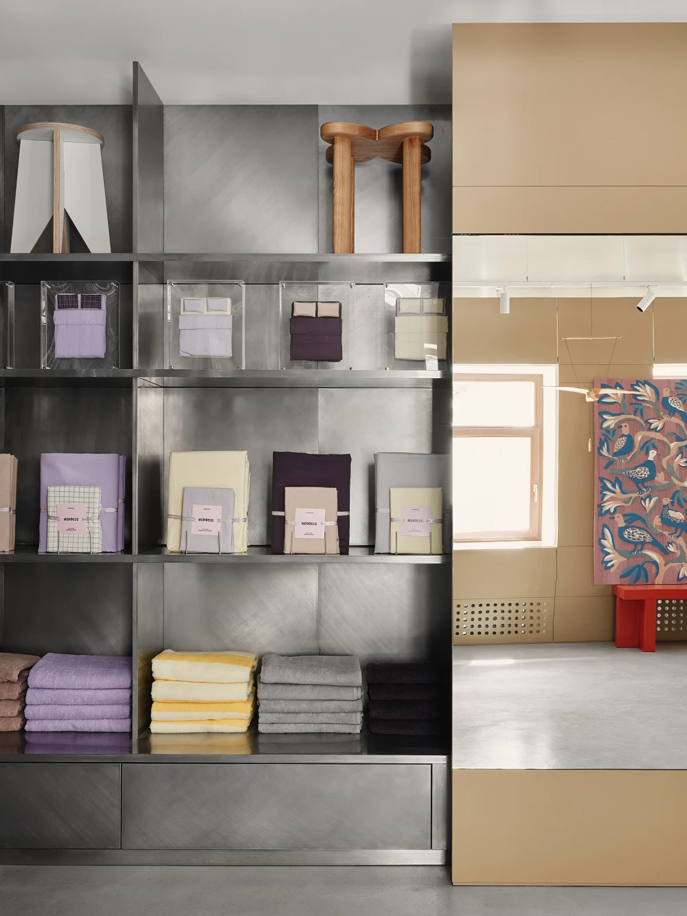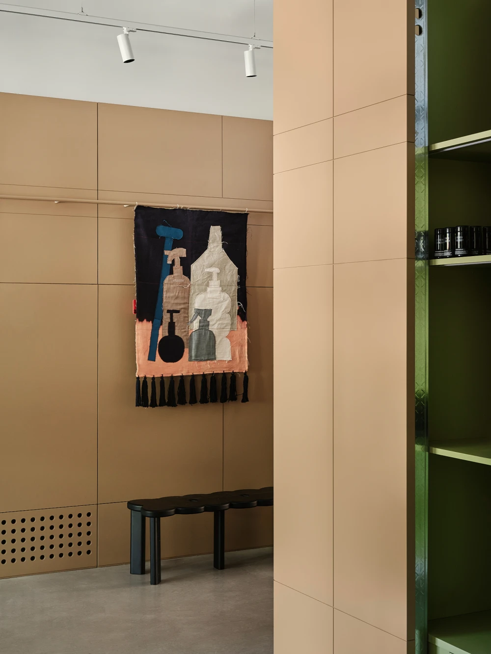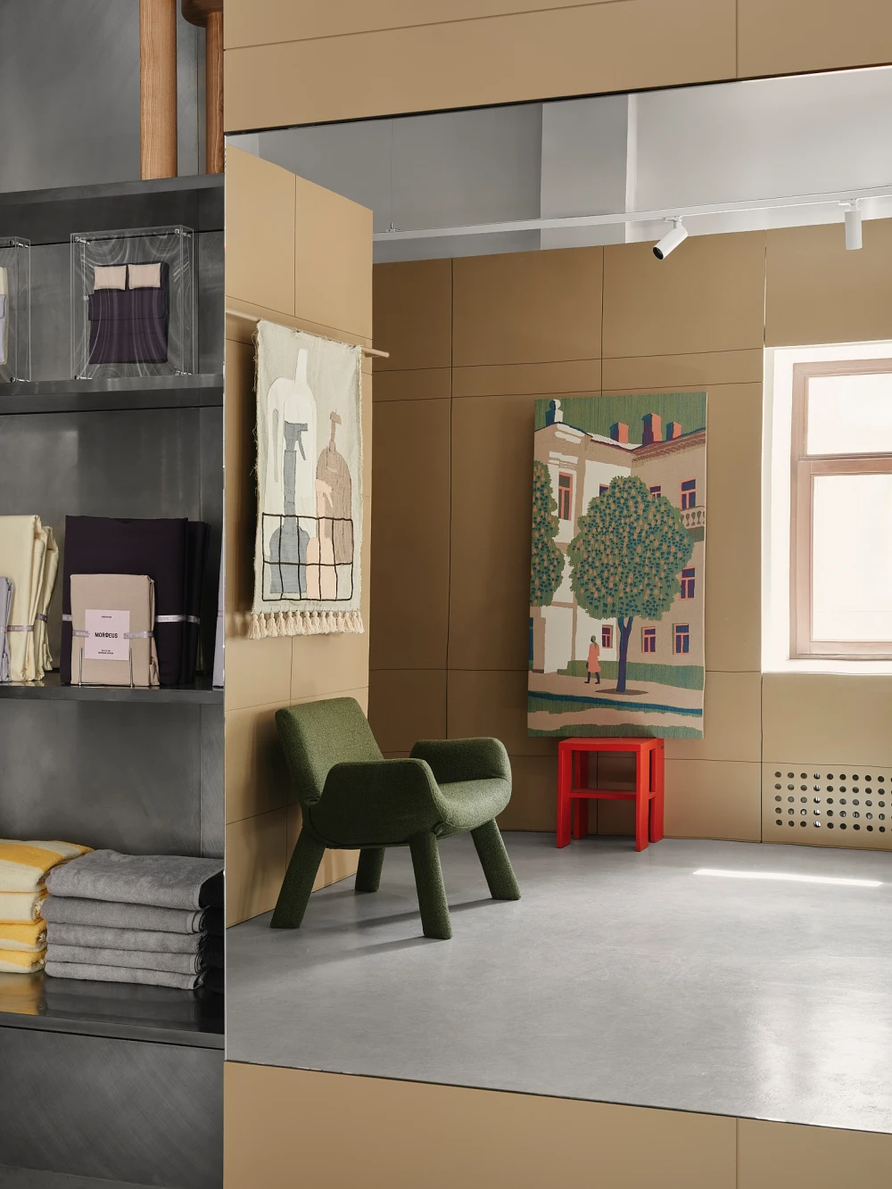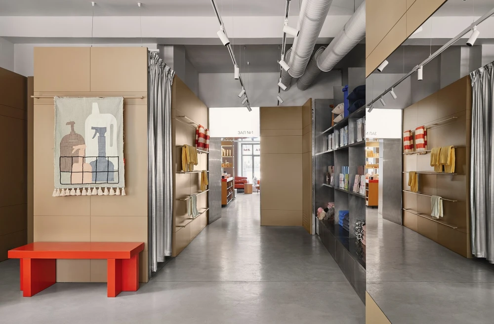 «Эстетика бюро находок определила материальное решение проекта. Мы использовали сложную теплую палитру, панели из переработанного пластика и лакированную мебель в духе 1970-х. Это сочетание отсылает к истории и создает тот самый уютный эффект картотеки, где каждая вещь находится на своем месте. Пространство разделено на два зала: первый, мультибрендовый, заполнен товарами разных брендов и мастеров, а второй, более «тихий» визуально, целиком посвящен текстилю бренда Morpheus».