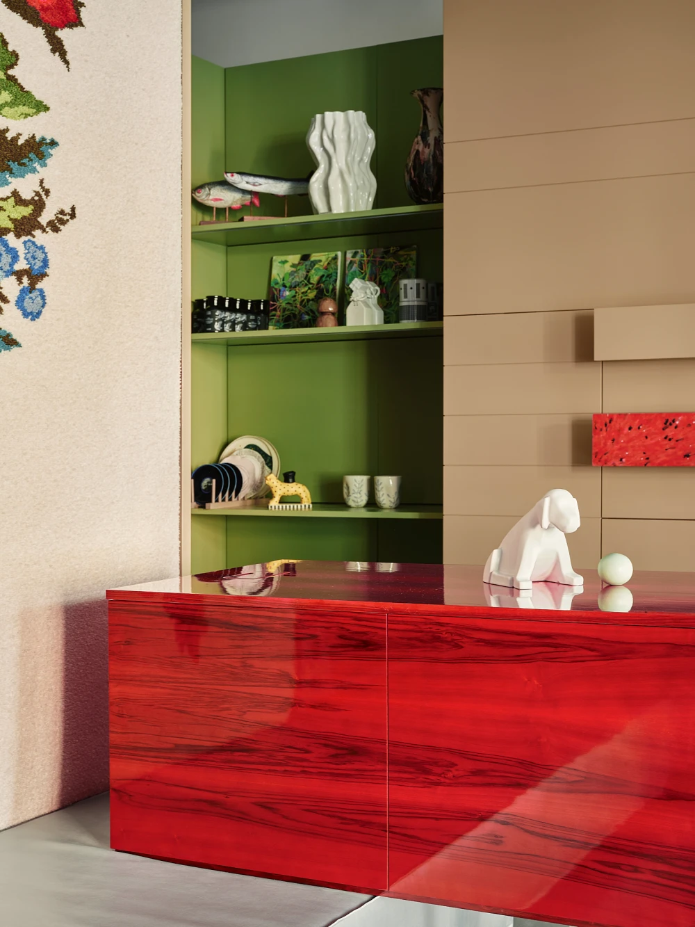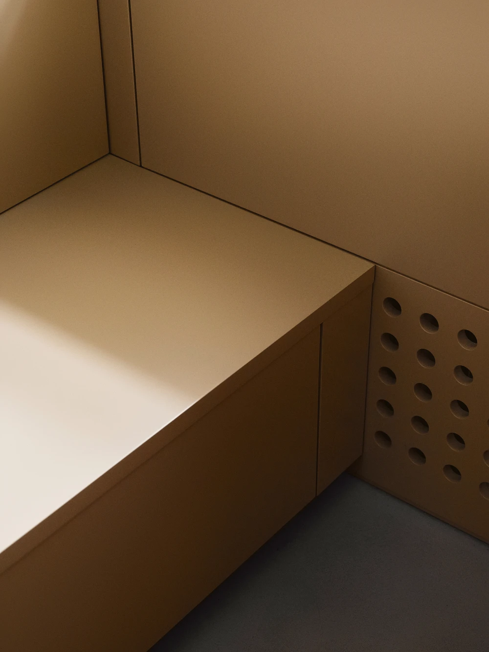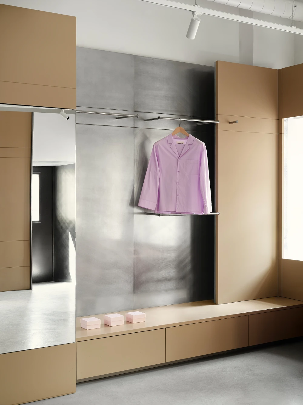 «Эстетика бюро находок определила материальное решение проекта. Мы использовали сложную теплую палитру, панели из переработанного пластика и лакированную мебель в духе 1970-х. Это сочетание отсылает к истории и создает тот самый уютный эффект картотеки, где каждая вещь находится на своем месте. Пространство разделено на два зала: первый, мультибрендовый, заполнен товарами разных брендов и мастеров, а второй, более «тихий» визуально, целиком посвящен текстилю бренда Morpheus».