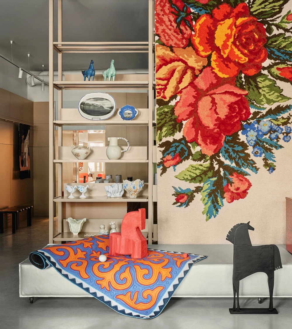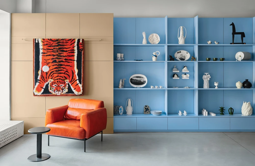 «Чтобы снизить нагрузку на посетителя, мы предусмотрели зону отдыха с креслами и сиденьями на подоконниках. Здесь можно сделать паузу, «переварить» полученные впечатления и подольше задержаться в магазине. Большое влияние на восприятие и поведение покупателя оказывают незаметные на первый взгляд детали: аккуратный лайтбокс над входом во второй зал приглашает в него зайти, а специально продуманный ритм полок позволяет одинаково легко рассмотреть все предметы: от маленьких скульптур до объемного текстиля».