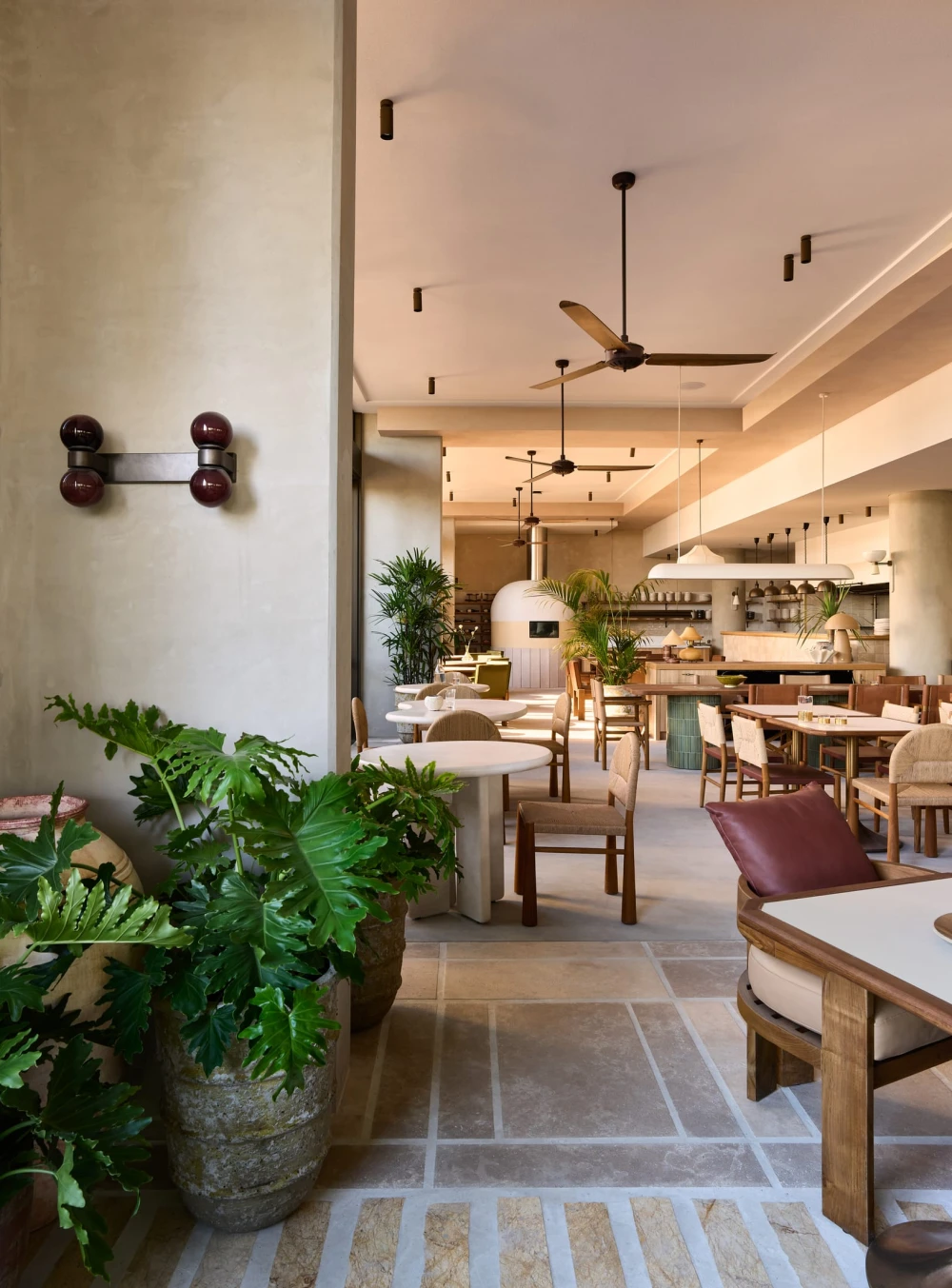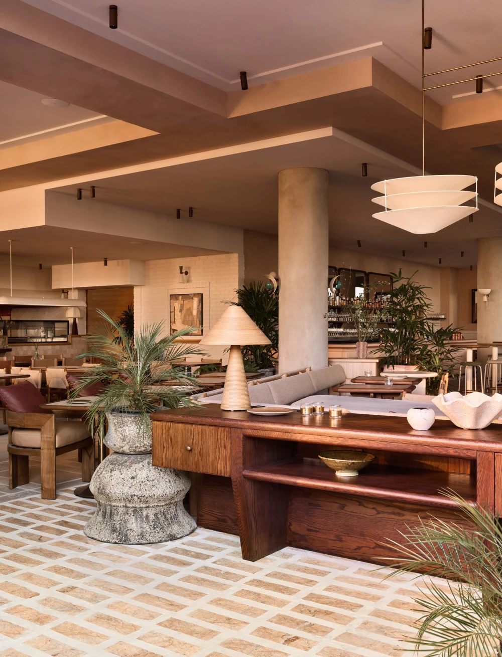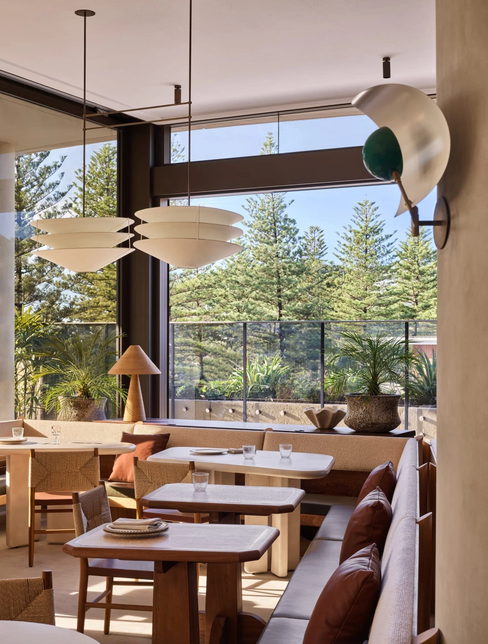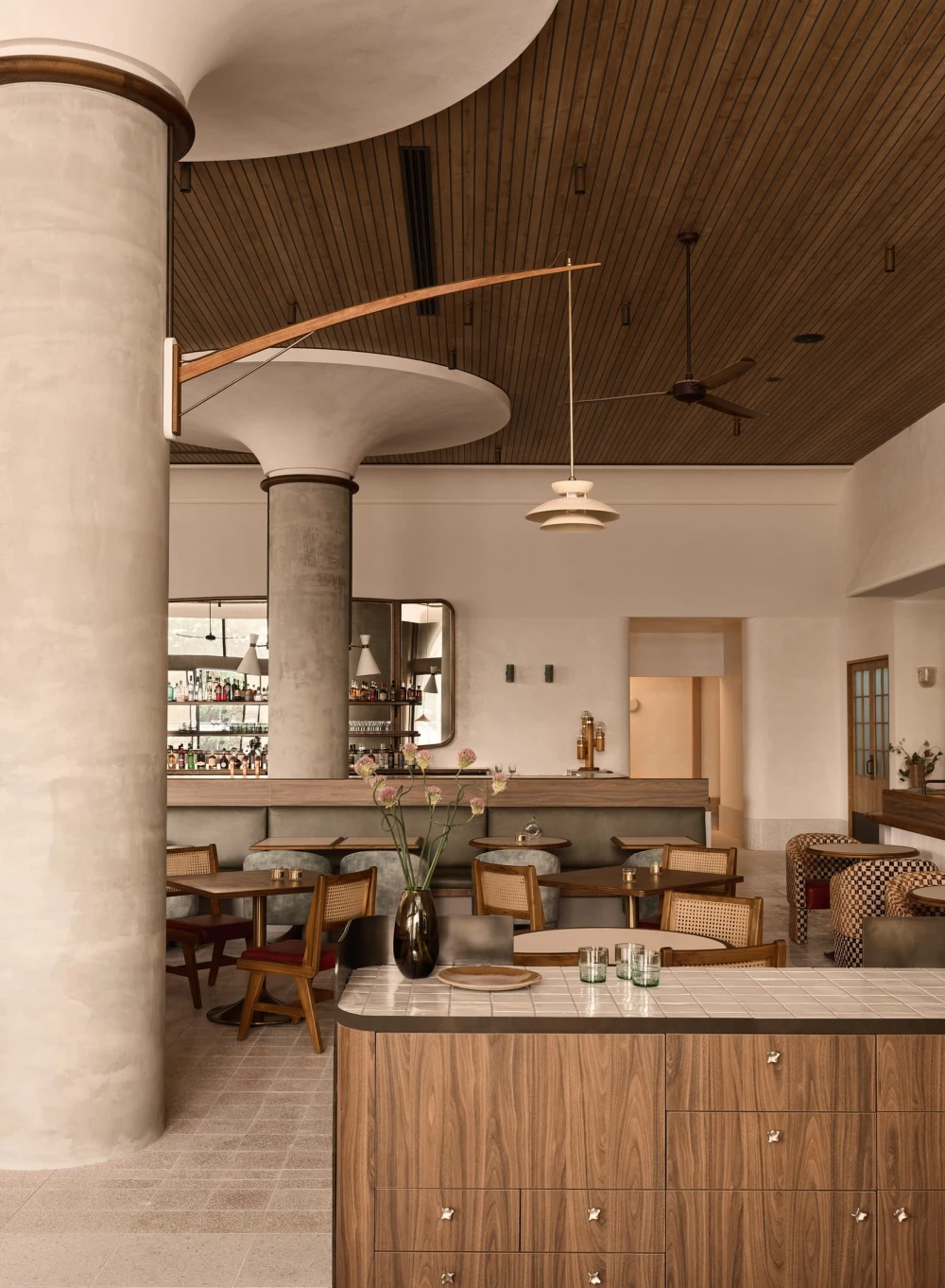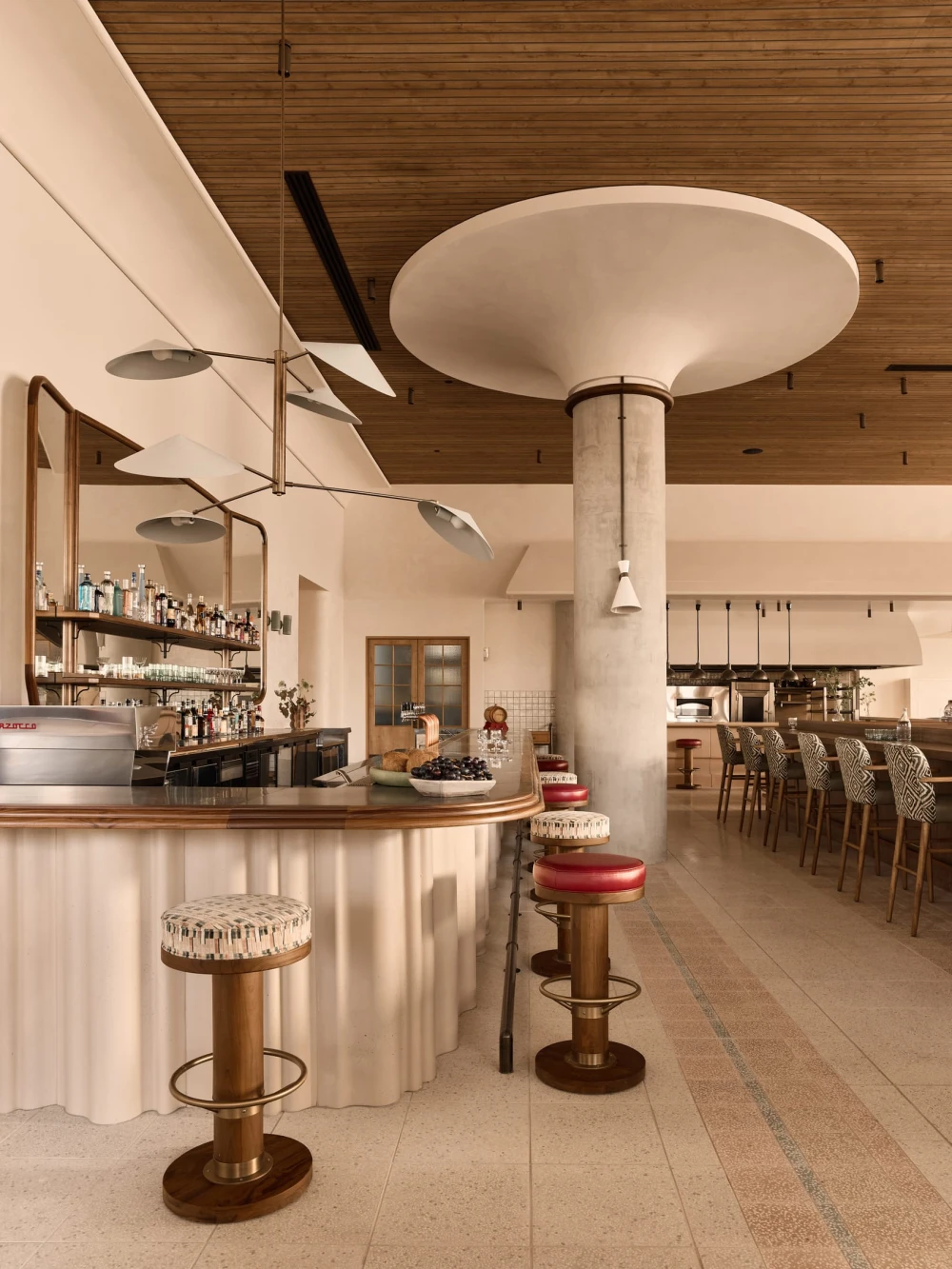 Mondrian Gold Coast — это первый отель знаменитой гостиничной сети в Австралии. Комплекс из двух 24-этажных башен, спроектированный архитектурным бюро Fraser & Partners, расположился на пляже Берли — популярном месте для серфинга, которое сочетает в себе роскошную атмосферу курорта Голд-Кост, изобилующего дорогими барами и бутиками, и богемный дух прибрежного городка Байрон-Бей. Именно эту расслабленную изысканность студия Alexander & Co постаралась передать в интерьерах двух ресторанов отеля, черпая вдохновение в дизайне середины XX века и средиземноморском стиле.