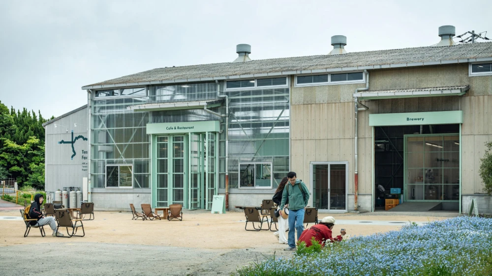 Японская студия Schemata Architects реконструировала старую фабрику на острове Тэсима: здание бывшего металлургического завода площадью 360 кв. метров адаптировали под кафе и пивоварню.Часть металлических стен заменили на полупрозрачные панели из поликарбоната, а для укрепления конструкции добавили стальные опоры. По словам руководителя студии Джо Нагасаки, архитекторам было важно найти баланс между сохранением индустриальной эстетики и созданием дружелюбного общественного пространства.