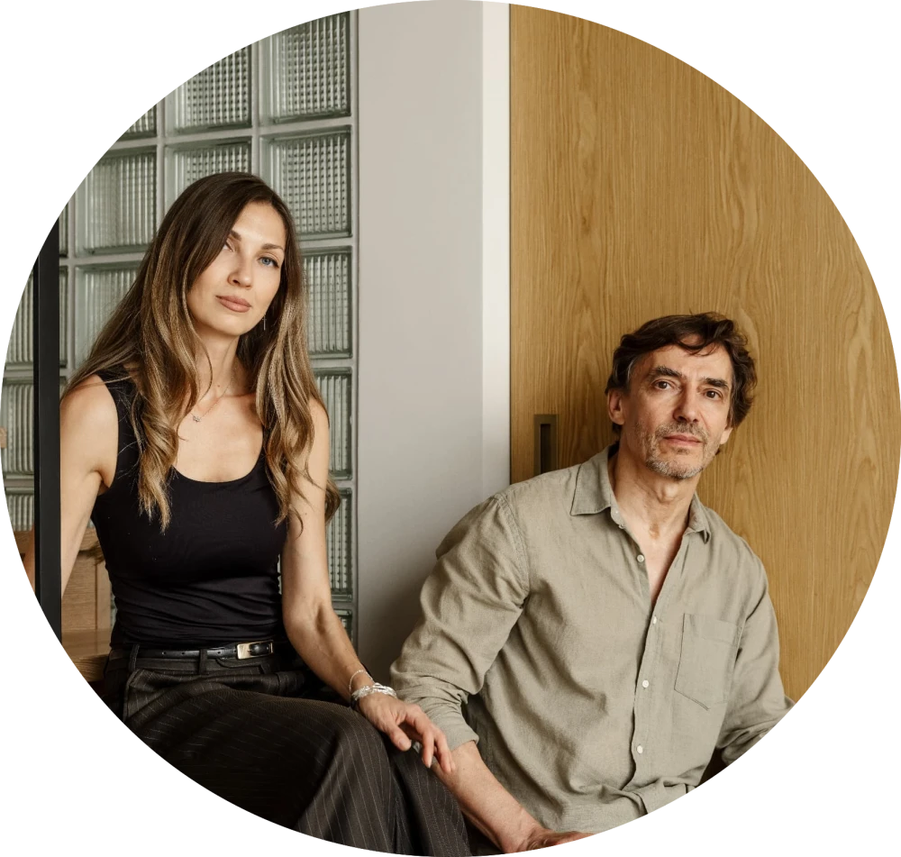 «В интерьере мы старались соединить современность и исторический контекст, добавить немного «парижского» настроения, вдохновленного любимыми городами заказчиков, и создать пространство, где технологии, функциональность и эмоции гармонично сосуществуют. Цветовое решение строилось на контрасте открытого объема и приватных зон. Основные зоны остались светлыми — белый цвет работает как холст, усиливая ощущение воздуха и простора. Зато всю антресоль с мастер-спальней мы погрузили в глубокий коричневый, что позволило визуально объединить потолок и стены, нивелировать низкую высоту в этой зоне и создать камерное, почти театральное настроение».