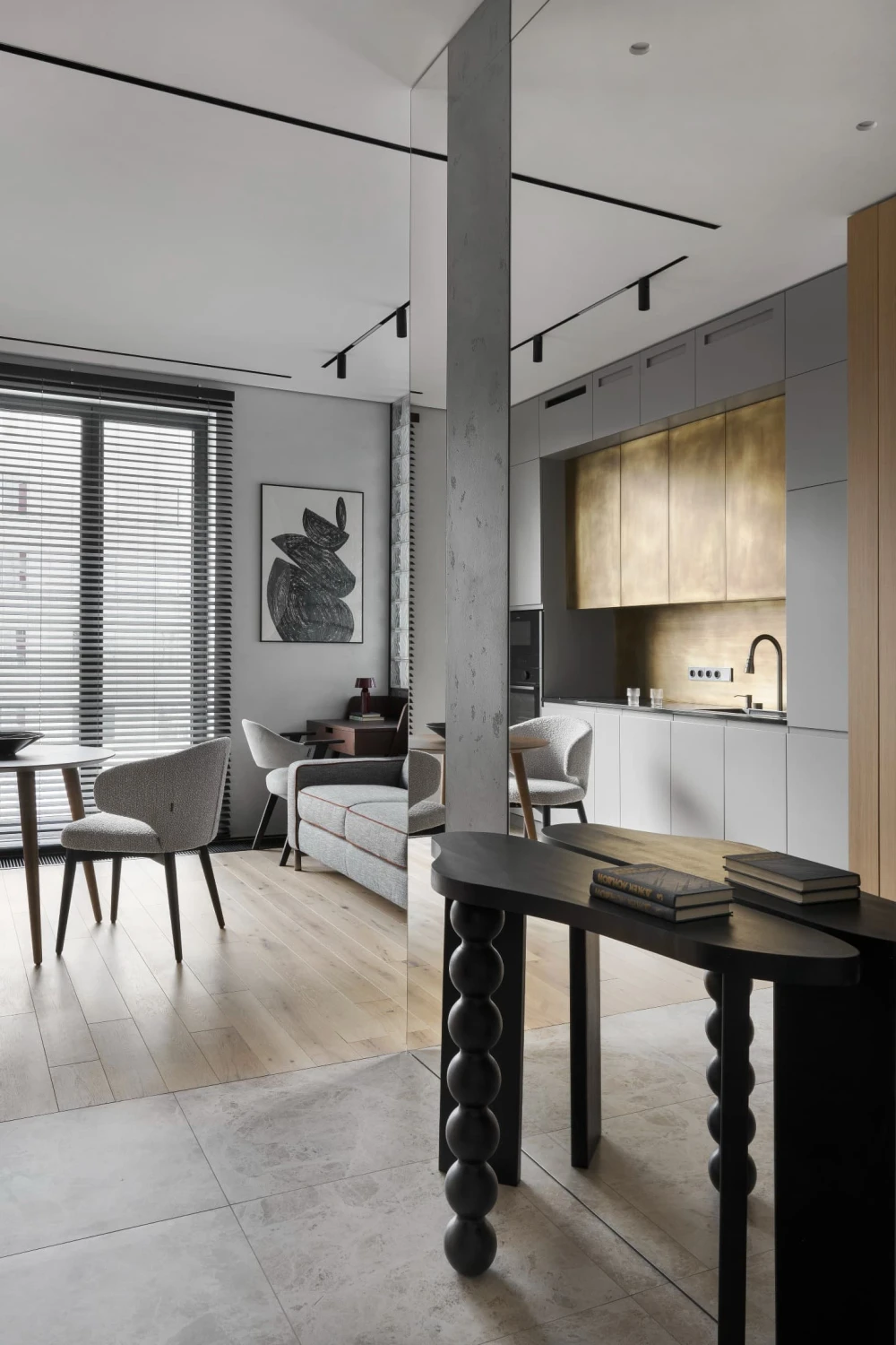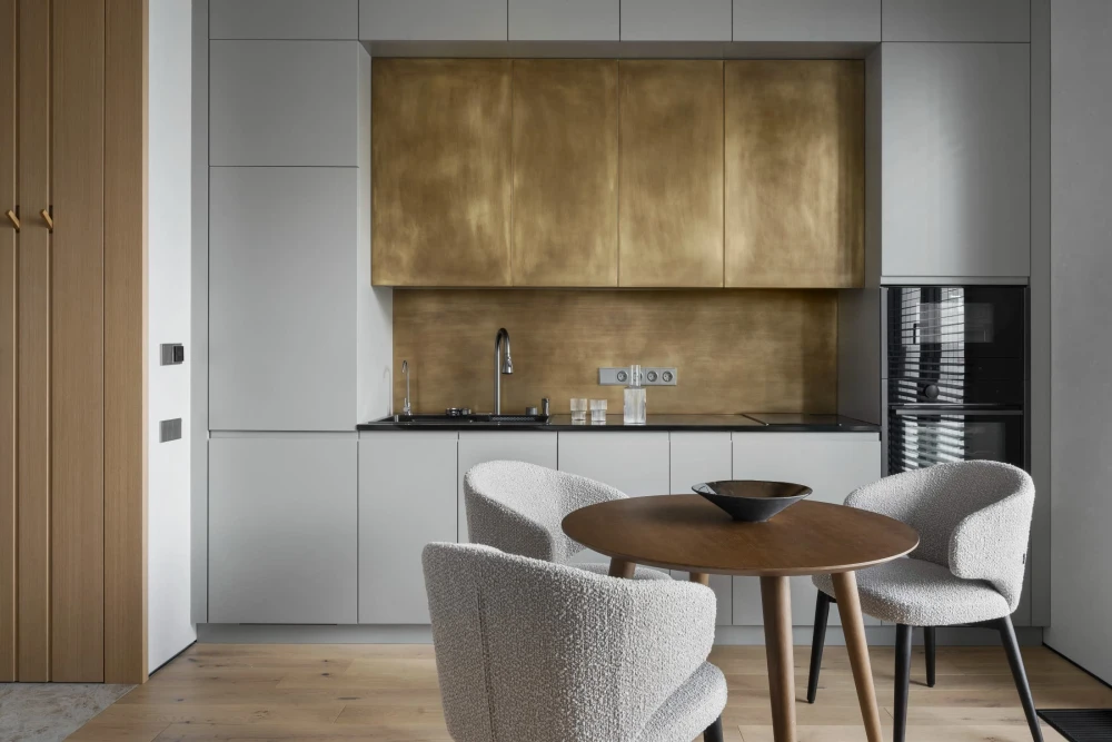 Небольшая квартира с золотой кухней и хаммамом: проект студии «Точка дизайна»