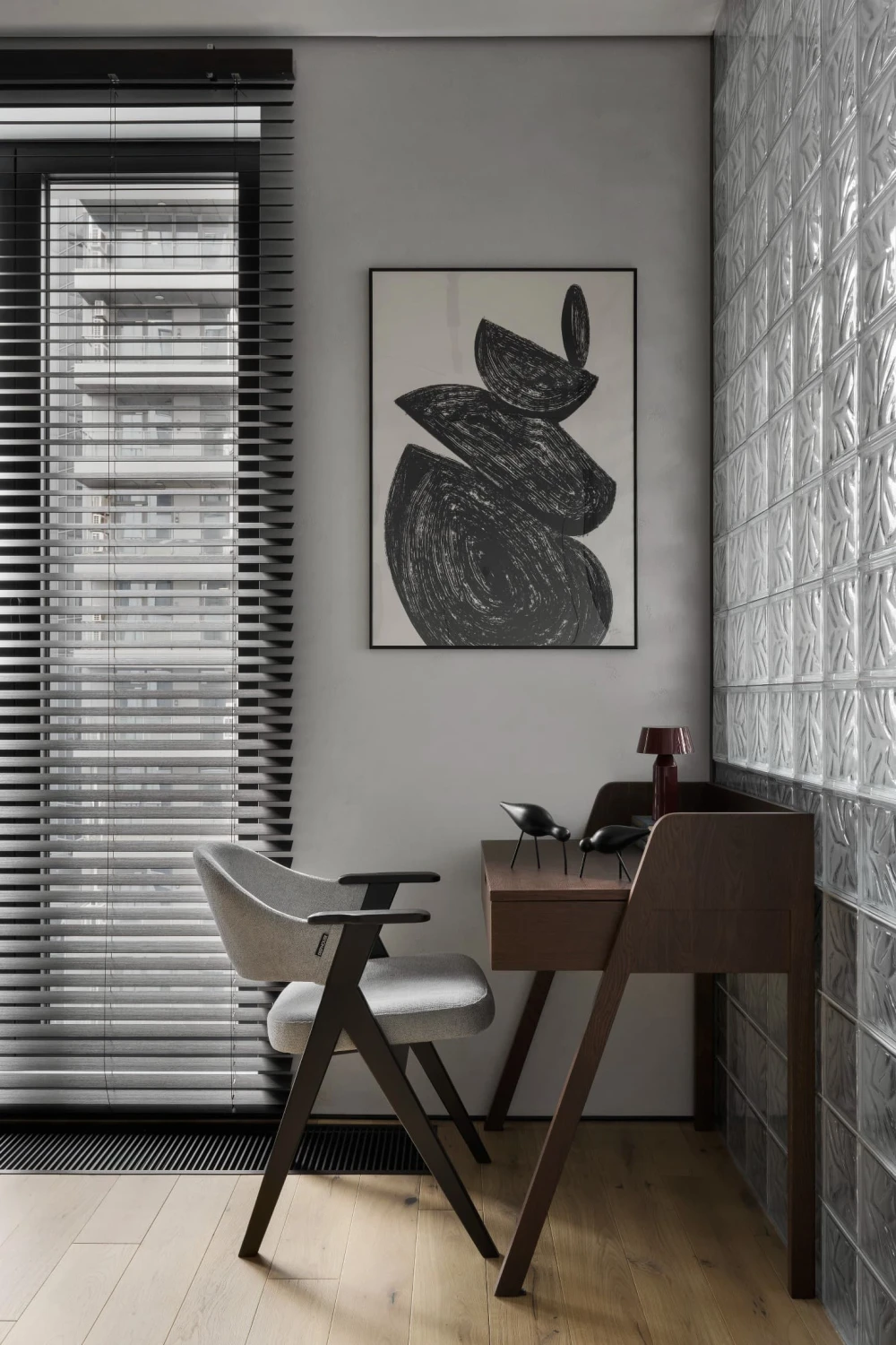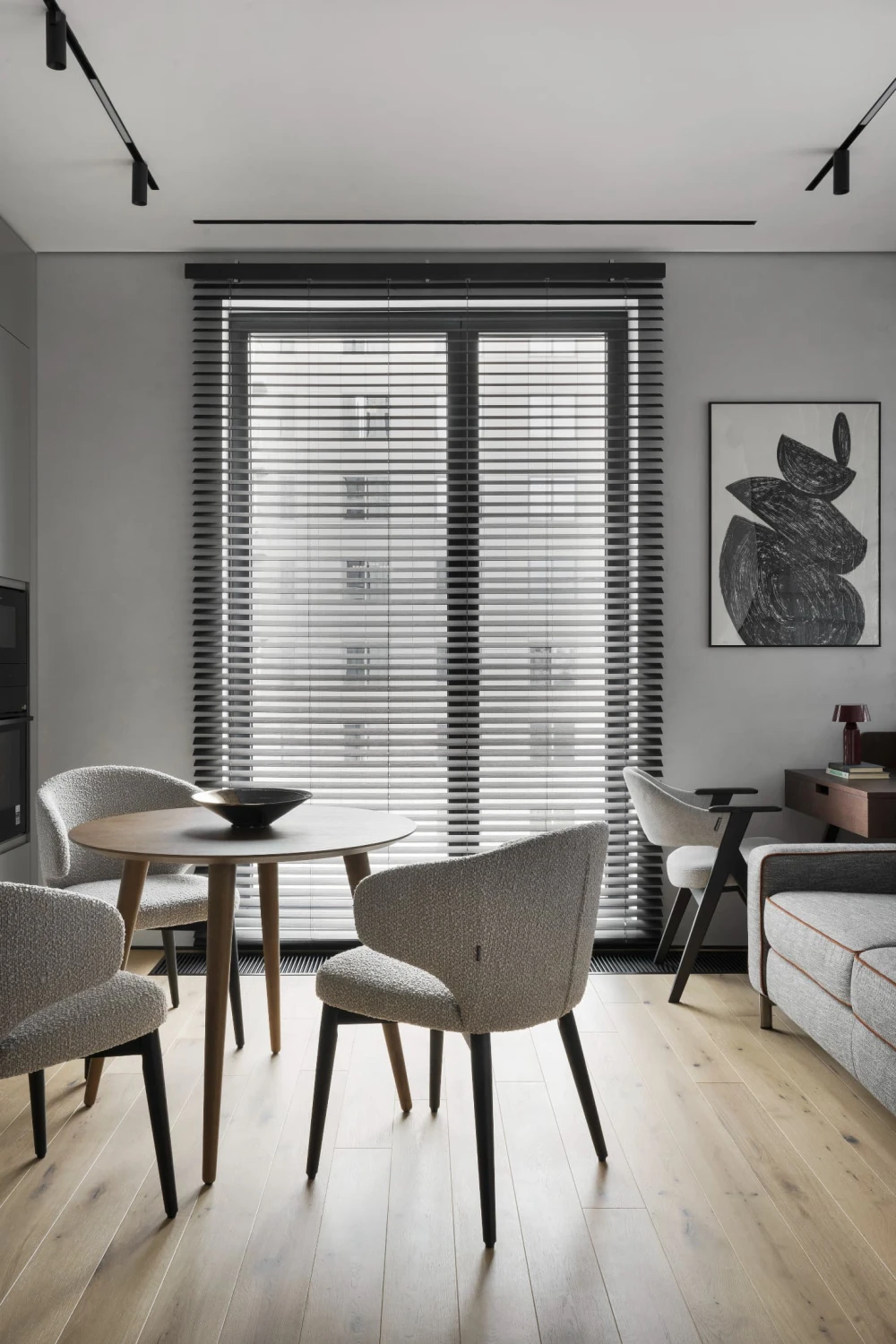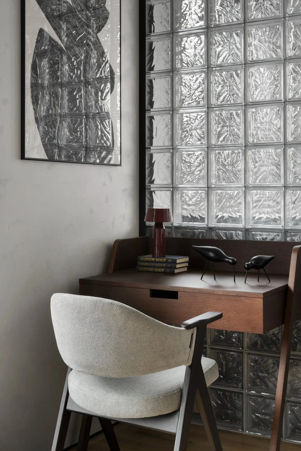«Индивидуальность в интерьер привносят выразительные детали — настольный светильник в виде женской фигуры с широкополой шляпой, которая направляет свет, создавая игру теней и отражений, бра в форме дисков и скульптурная консоль в прихожей».