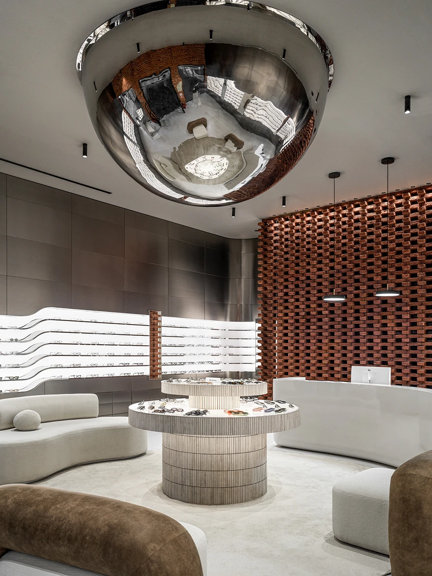 «Очки — эмоциональный и технологичный продукт, поэтому мы соединили прохладу металла с теплом кирпича, создав мостик в историю места и чувственный контраст, — рассказывают авторы проекта. — Баланс между современными технологиями, уютом и уважительной отсылкой к истории делает пространство неповторимым и запоминающимся».