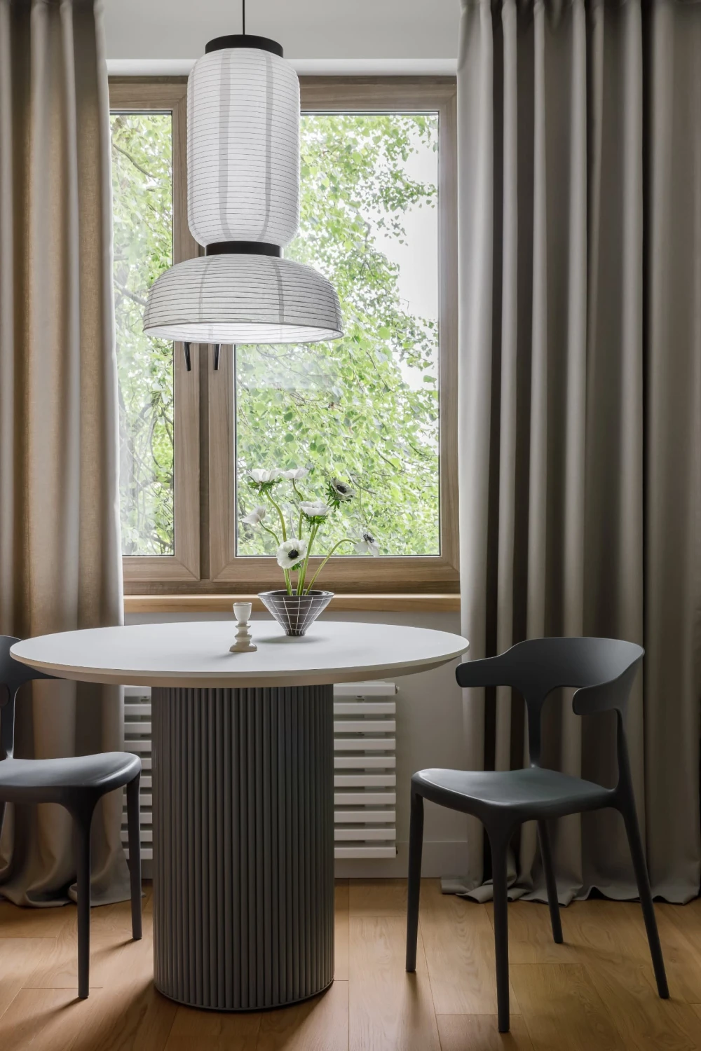 «Когда заказчики рассказывали о своих пожеланиях, у меня сразу сложился образ их будущего дома: светлый обволакивающий интерьер в южном духе, но с тонко внесенной ноткой брутальности — так, чтобы она легко читалась, но не утяжеляла пространство. Важно было создать функциональную и гармоничную квартиру, где можно вместе завтракать, принимать гостей, работать и проводить онлайн-конференции, но при этом обойтись без глобальных перепланировок, требующих длительного согласования».