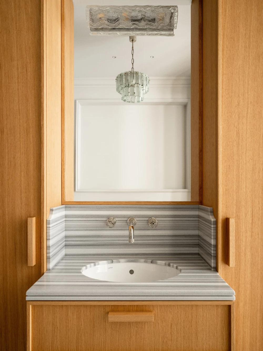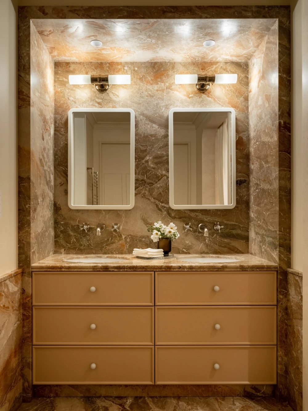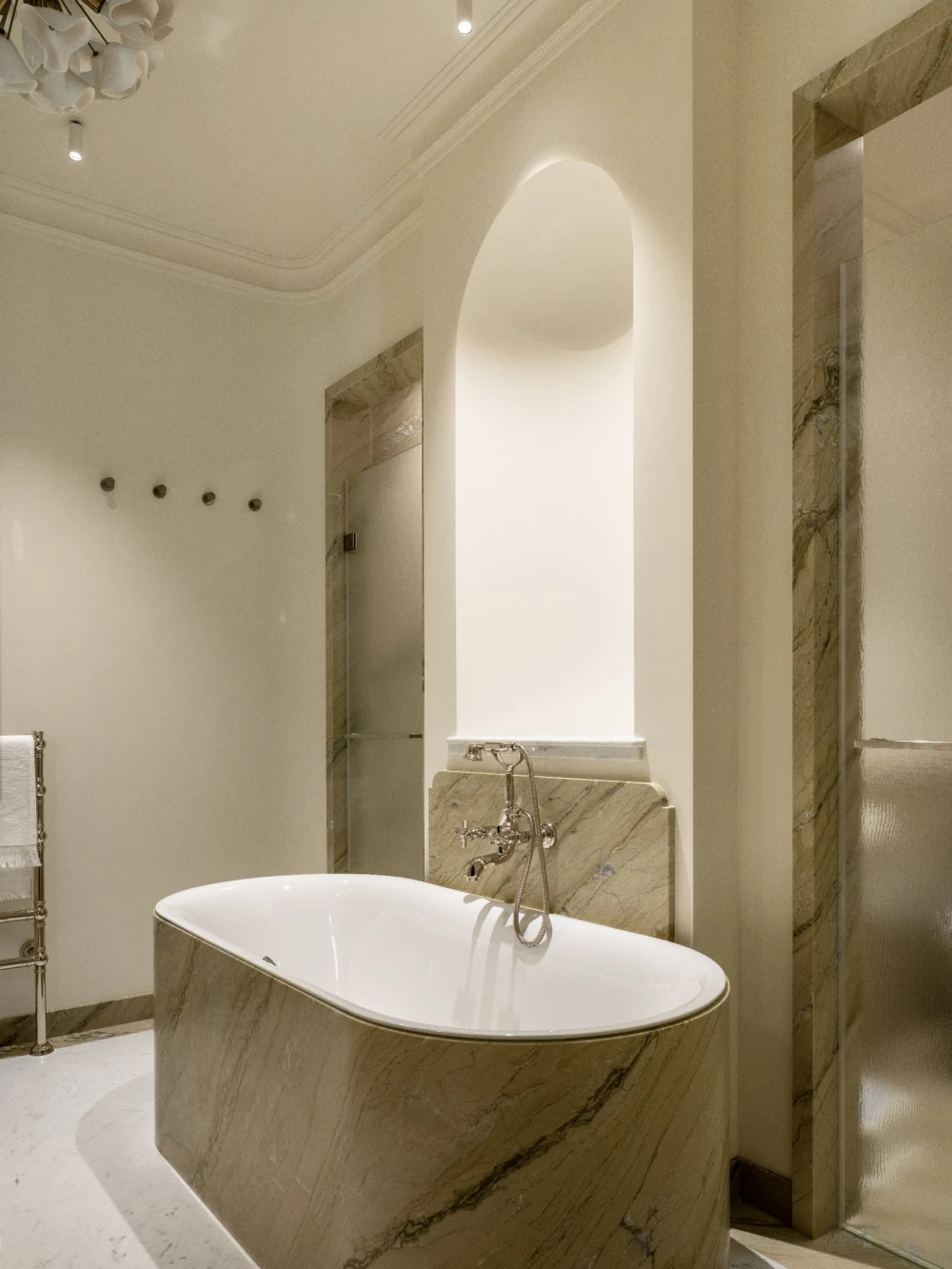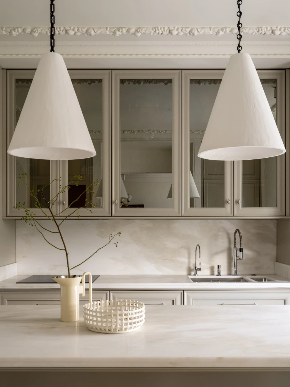 «Каждая деталь в этом интерьере рассказывает о характерах людей, живущих здесь, — говорят авторы проекта. — Вечерами дети музицируют за пианино, наполняя дом звуками любимых мелодий, а семейные фото, обычно украшающие полки, рассказывают историю нескольких поколений. Этот интерьер создан для большой интересной семьи, которая бережно хранит традиции, но живет в ногу со временем. Здесь классические молдинги и элегантная лепнина органично соседствуют с современными произведениями искусства, а стены превращаются в живую летопись благодаря коллекции картин и фотографий, пополняемой годами. Пространство живет в ритме своих хозяев: книги и картины, настольные лампы и торшеры, включенные даже днем, создают атмосферу уюта и уединенности».