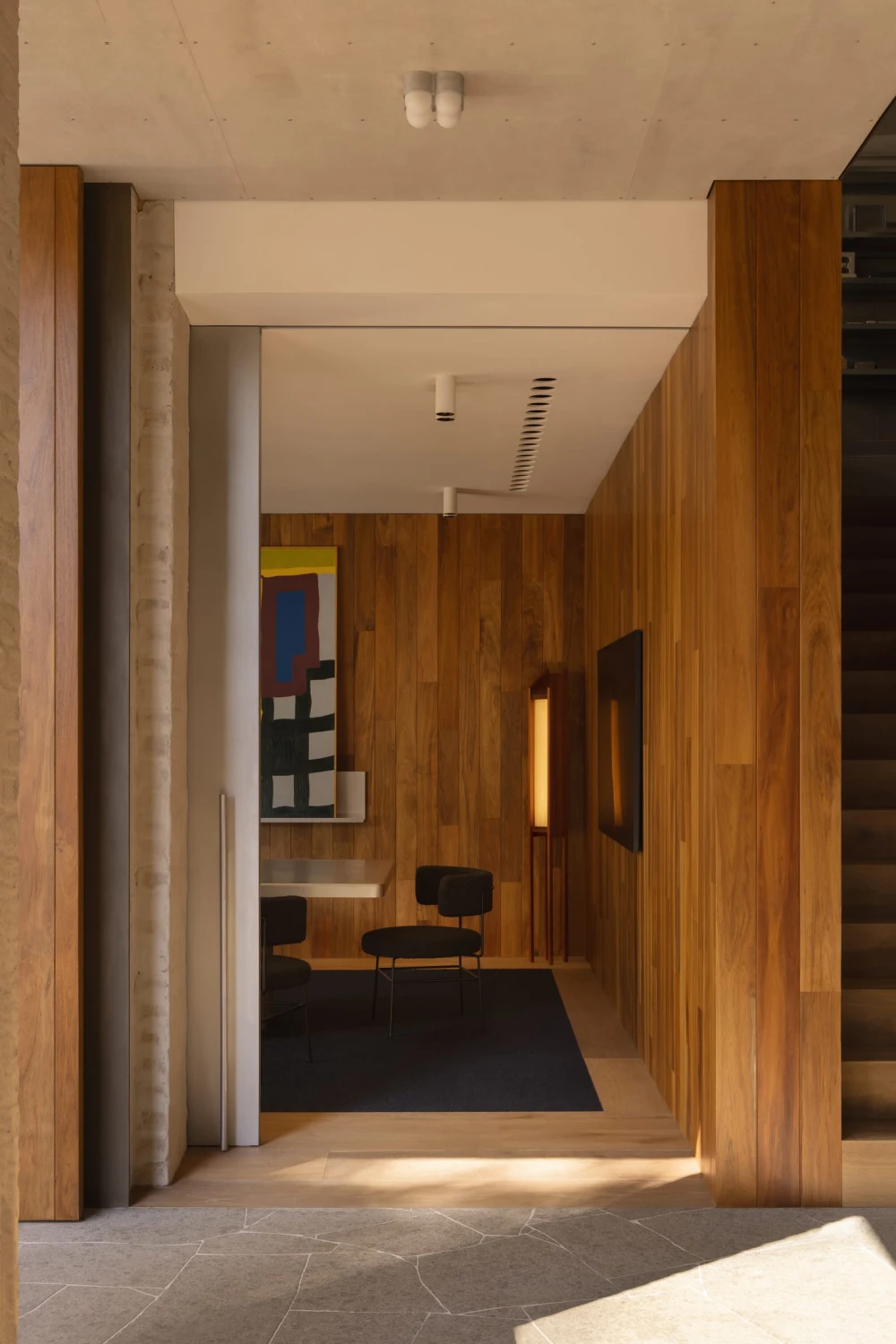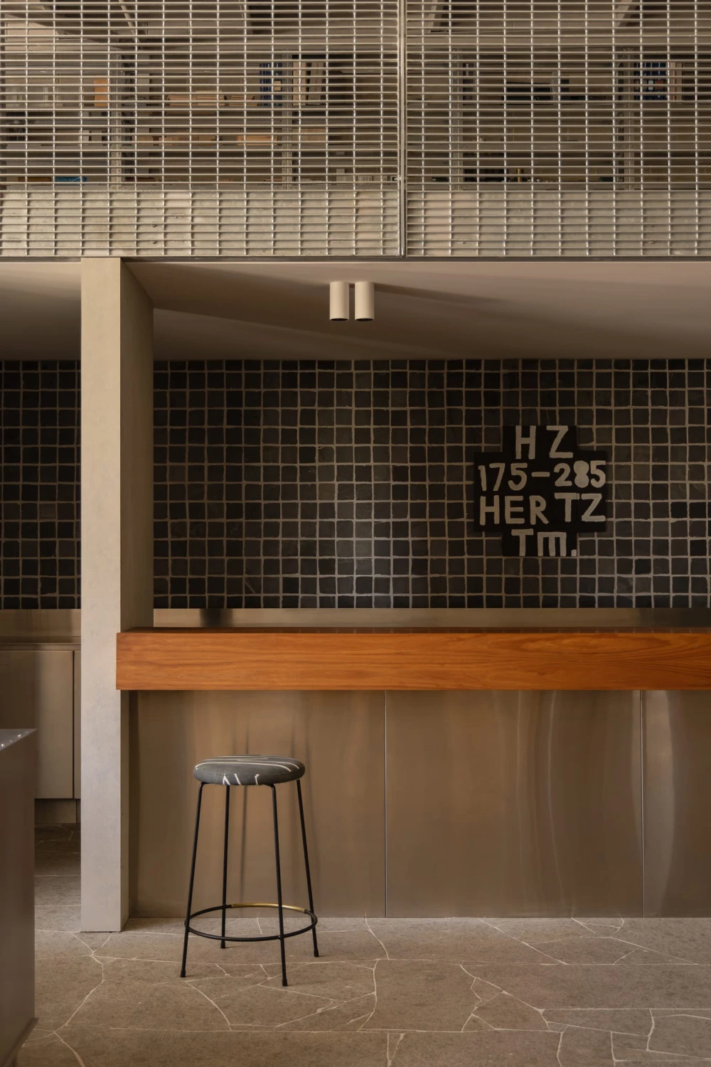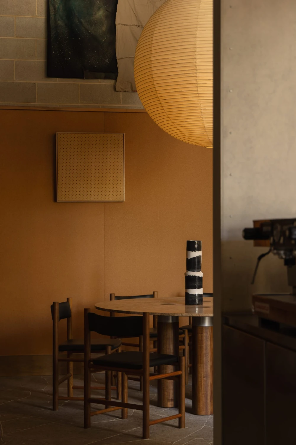 Художественная экспозиция, куратором которой стал Джеймс Браун, объединяет работы Нико Крайно, Эммалин Занелли, Мадлен Коллопи, Хари Кутлакиса и Генри Джока Уокера, а также самого Брауна. Их произведения служат акцентами в интерьере, эффектно контрастируя с бетонной и деревянной фактурой стен. Монохромная сдержанная основа превращается в сцену для ярких визуальных жестов — будто само пространство вдохновляет художников на диалог.