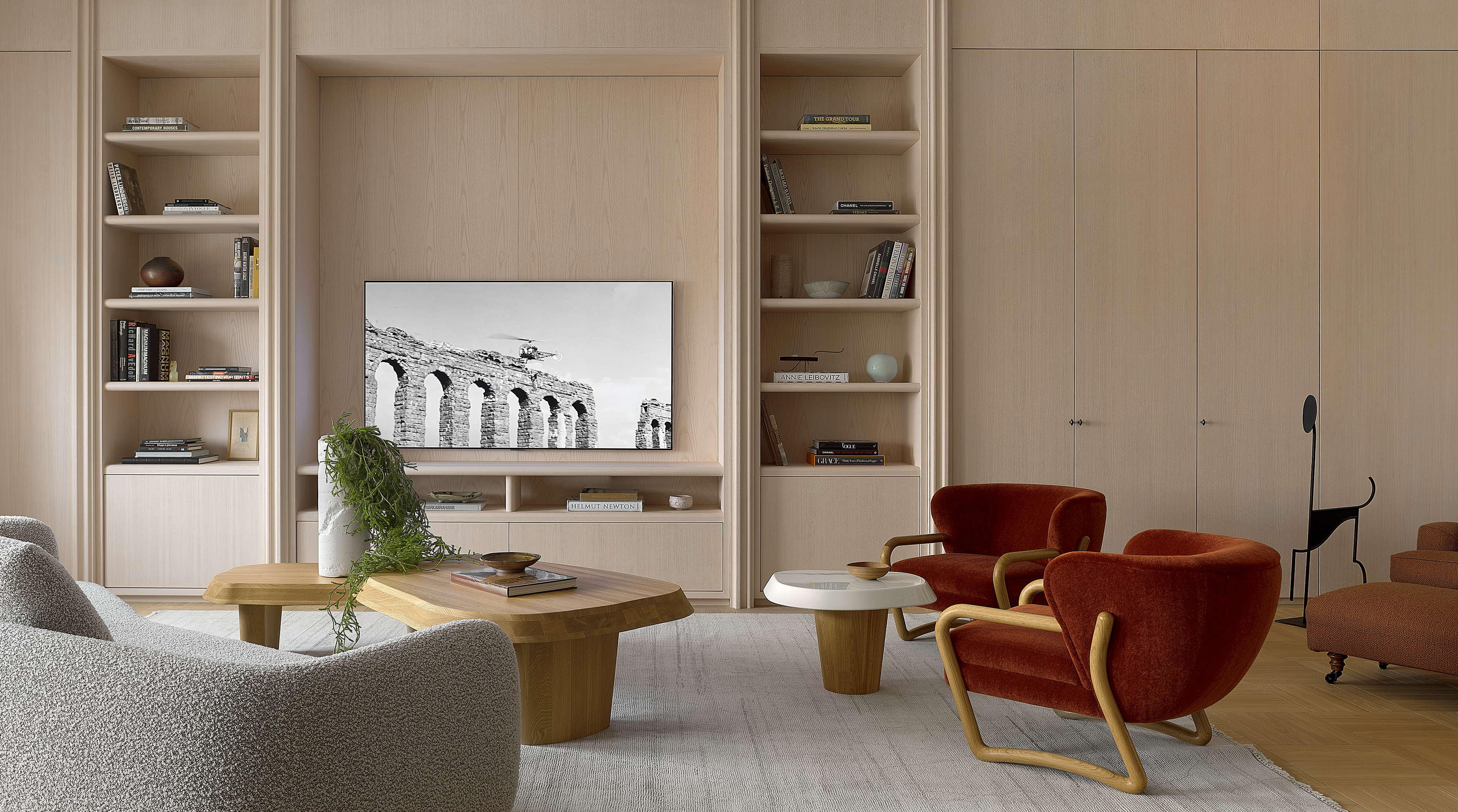 «Для нас, как всегда, важен поиск диалога между предметами и цветовыми пятнами», — говорят дизайнеры о палитре. Спокойную гамму разбавили сложными ягодными тонами, расставив акценты с помощью текстиля и обивки — для идеального дома каждая деталь имеет большое значение.