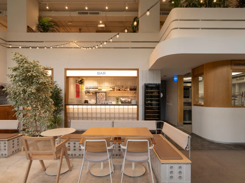 Ресторан Dizengof/99 на Нахимовском проспекте в Москве стал уже третьим проектом сети, над которым работала команда бюро KIDZ. В начале работы основатель ресторанов Евгений Цюпко показал архитекторам все реализованные заведения бренда и рассказал их историю, начиная с самого первого, открытого десять лет назад. Уже тогда прозвучал главный запрос: интерьер должен передавать атмосферу Тель-Авива — легкую, светлую, без избыточного декора, с ощущением Средиземноморья и гармонией уличной и внутренней среды.