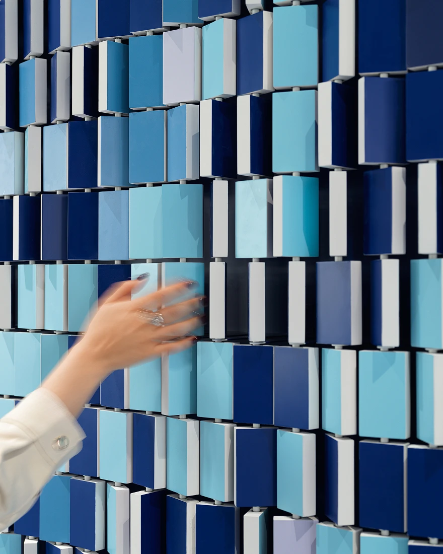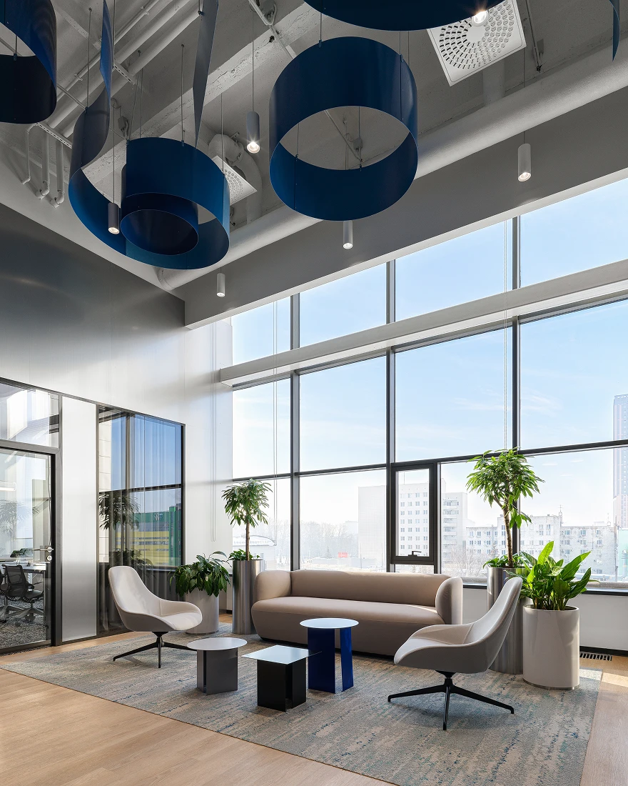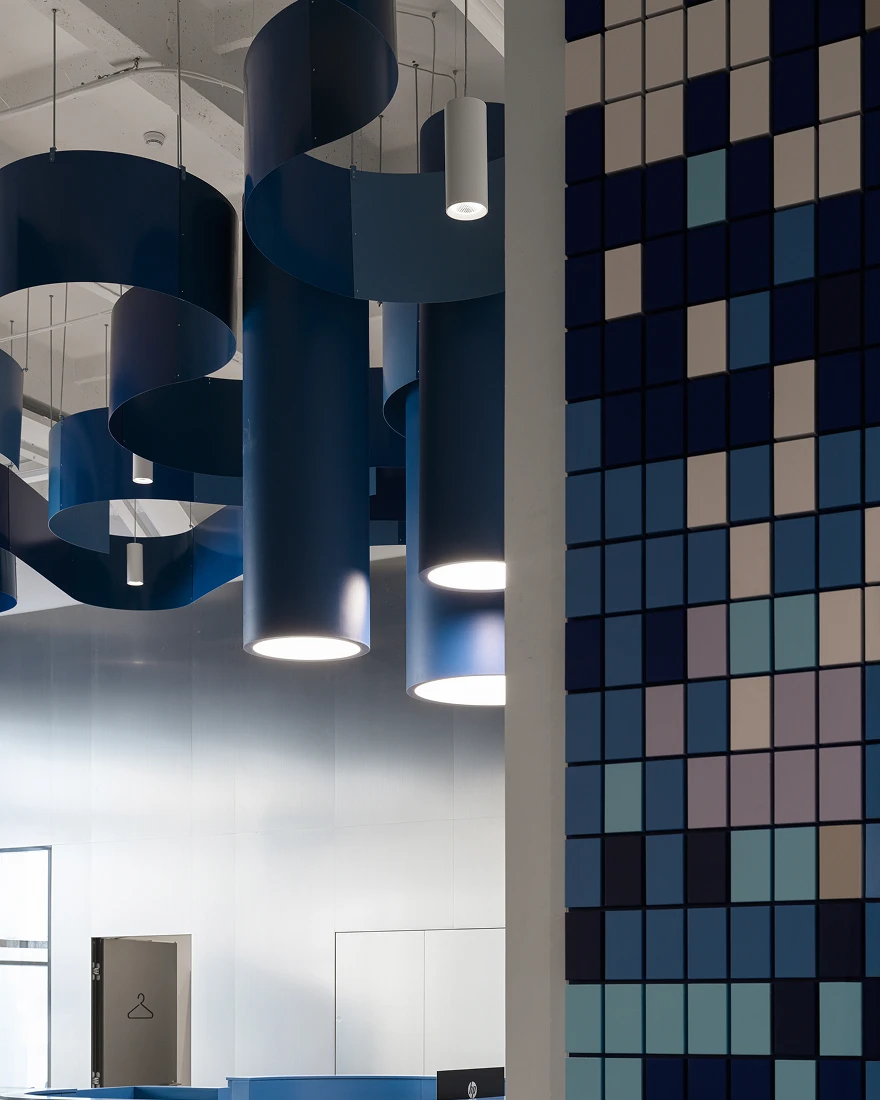 Центральное место в проекте занимают арт-объекты. В их числе — масштабная арт-инсталляция из металлических пластин синего цвета, расположенная над стойкой ресепшен и продолжающаяся в напольных объектах; интерактивные блоки, отражающие путь и историю развития компании; арт-стена в виде мозаики; настенные зеленые кашпо, символизирующие связь с экологией, и объект с редкими растениями Башкортостана.