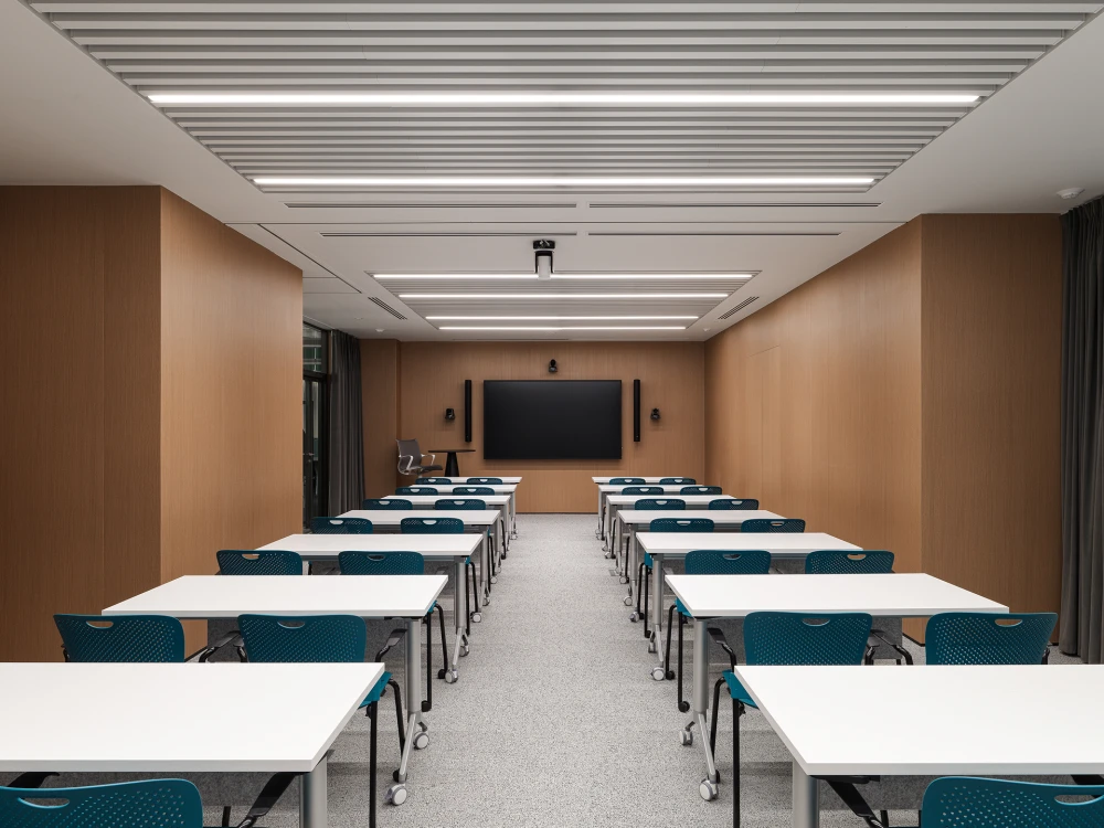 В центре офиса находится мультифункциональная зона с трансформируемыми перегородками, которая может быть поделена на переговорные комнаты и атриум или же выступать единым пространством для больших мероприятий. Кроме того, одна из антресолей выделена исключительно под well-being пространства и досуг: игровая комната, тренажерный зал и йога-класс, душевые, кофе-поинт, зона медитаций, зона с подиумом для кинофильмов и общих неформальных собраний, зона библиотеки и тихого чтения, комната сна с капсулой.