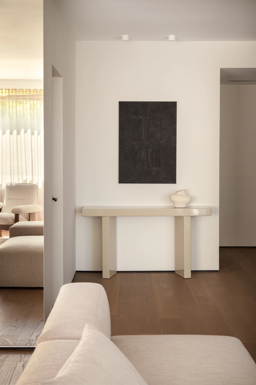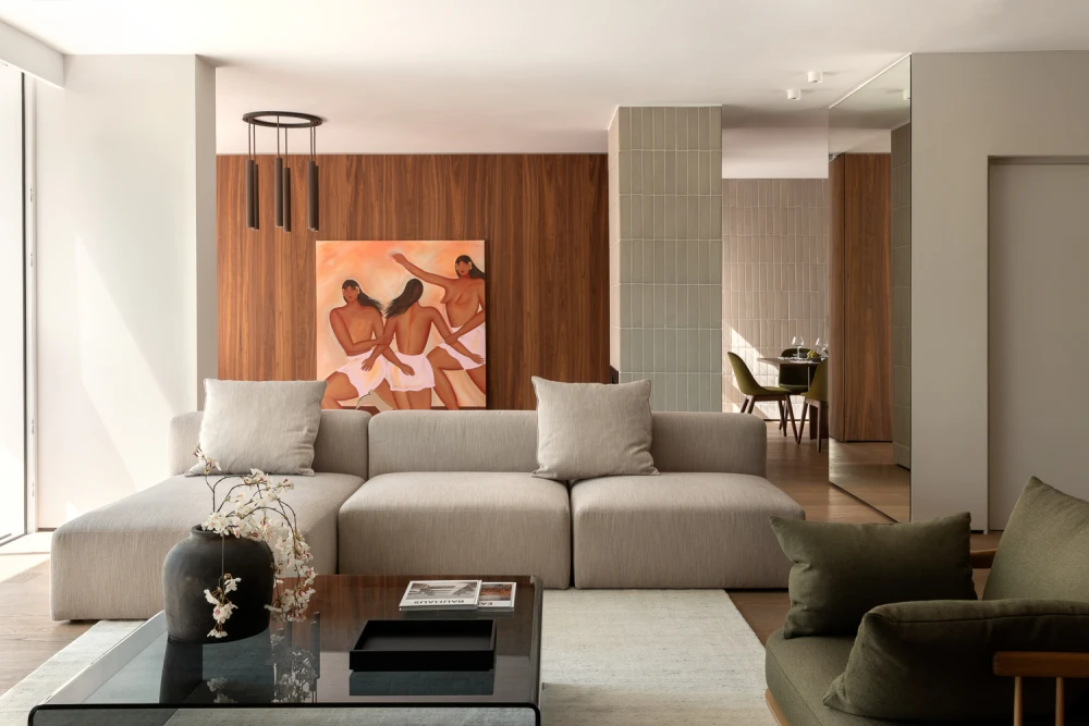 Эта квартира находится в одном из самых тихих и престижных районов Барселоны Педральбес, в комплексе, построенном в духе японского модернизма. При первом знакомстве с пространством команду Se.studio впечатлили большие окна, через которые врываются кроны сосен. «Для Барселоны такая зеленая панорама — большая редкость, — рассказывает архитектор Анна Учеватова. — Однако интерьер словно застрял в прошлом. Классические буазери, шелковые обои, штучный паркет — все это выглядело слишком тяжелым и не сочеталось с панорамными окнами и горизонтальными линиями здания».