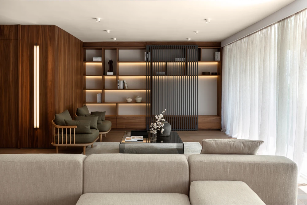 Заказчики — инвесторы, которые хотели создать современное пространство для большой семьи. Интерьер должен был быть стильным, лаконичным и в то же время живым и теплым. Отправной точкой для дизайнеров стал сам дом: его геометрия, свет и атмосфера. «Мы стремились создать цельный интерьер, который бы «разговаривал» с архитектурой здания и природой за окном. Хотелось сохранить модернистскую строгость, но наполнить пространство теплом, тактильными фактурами и нюансами».