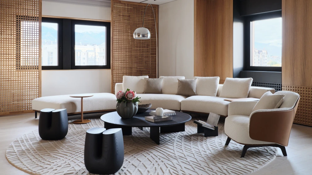 Архитекторы студии Kvadrat Architects оформили в Алматы квартиру площадью 160 кв. метров с панорамным видом на горы. «Интерьер создан для семьи, ценящей традиционный уклад и крепкие родственные связи, с главным запросом — воссоздать атмосферу гостеприимного родительского дома».