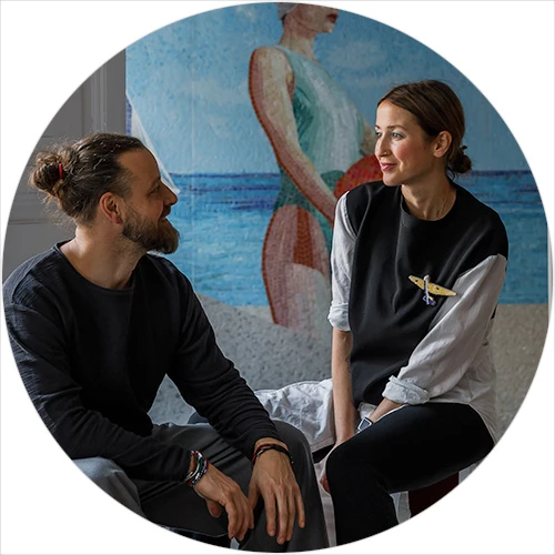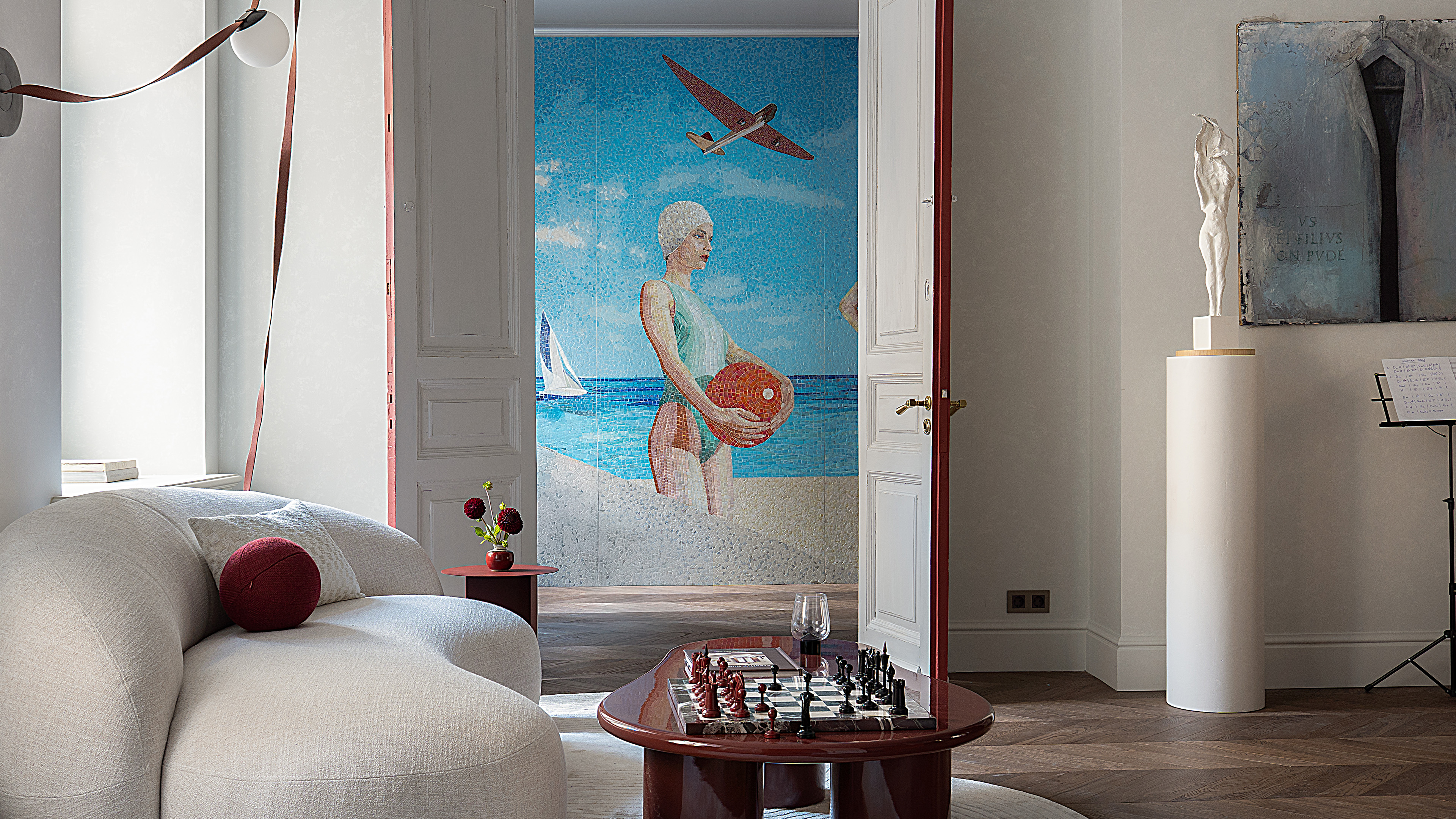 Гордостью проекта и доминантой анфилады стала мозаика «Начало», созданная совместно Ardo с известной художницей Ольги Солдатовой, которая входит в топ 19 лучших мозаичистов мира. По словам дизайнера, купальщицы на панно олицетворяют спокойствие и силу духа, а красный самолет служит узнаваемым почерком автора.