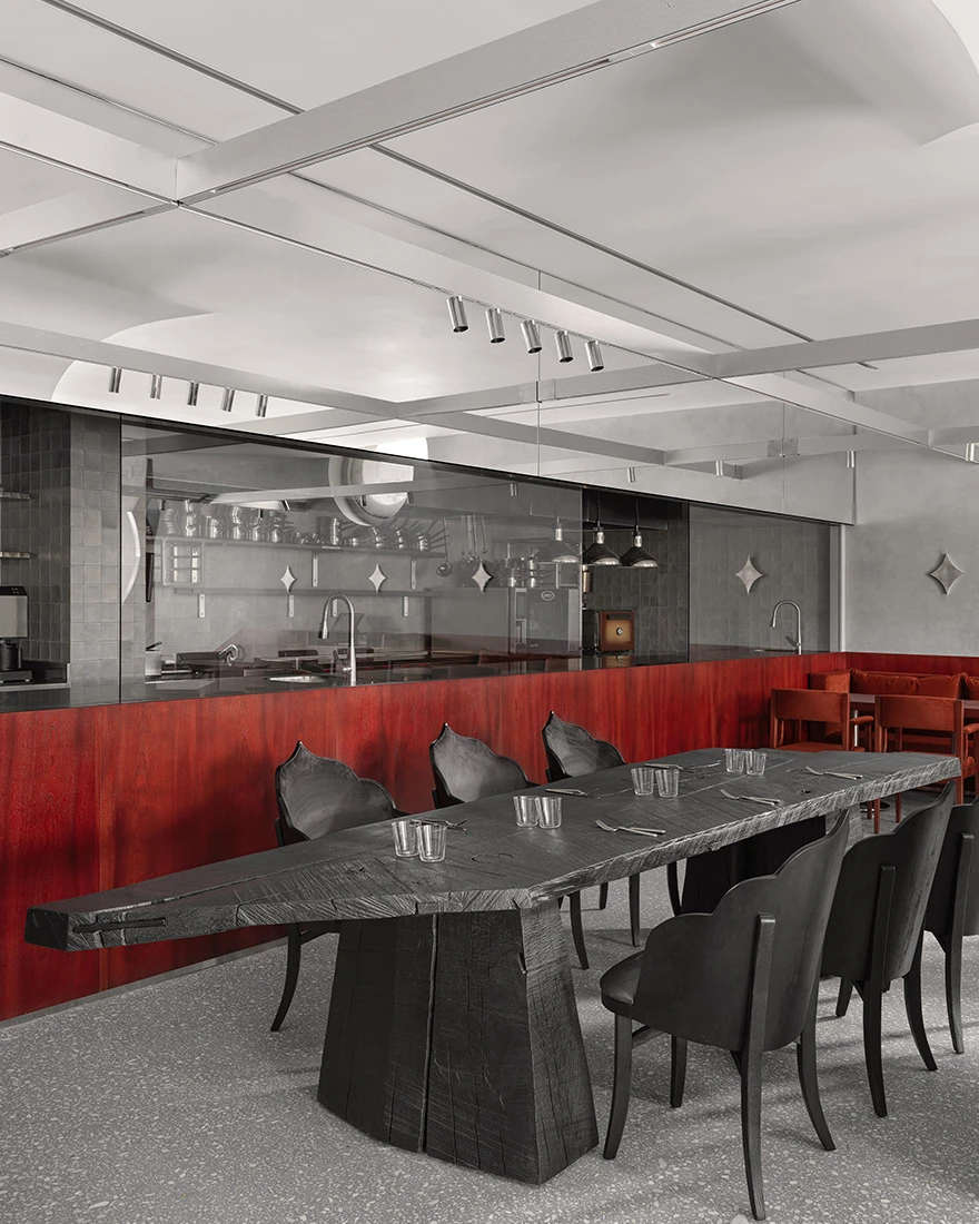 «Основным пожеланием заказчиков была концепция «ресторана на каждый день», который идеально вписался бы в экосистему премиального жилого комплекса. Перед нами стояла задача создать пространство, которое одинаково хорошо подойдет и для утреннего кофе, и для делового обеда, и для вечерней встречи с друзьями или семьей. Ключевым было ощущение честного, не претенциозного места, куда хочется возвращаться. Именно поэтому мы искали образы знакомые и теплые — как воспоминания из сказки, но пересказанные на современном архитектурном языке», — делится дизайнер.