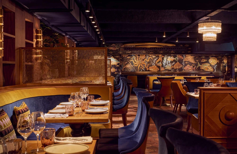 Интерьеры воплощают современные представления о роскоши, миксуя парижскую элегантность с монументальностью Анд: глубокие синие и золотые тона встречаются в предметах мебели, теплом освещении, блеске латуни и отделке стен.