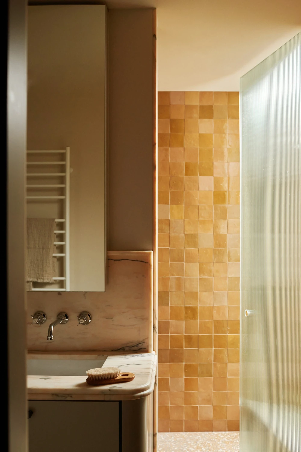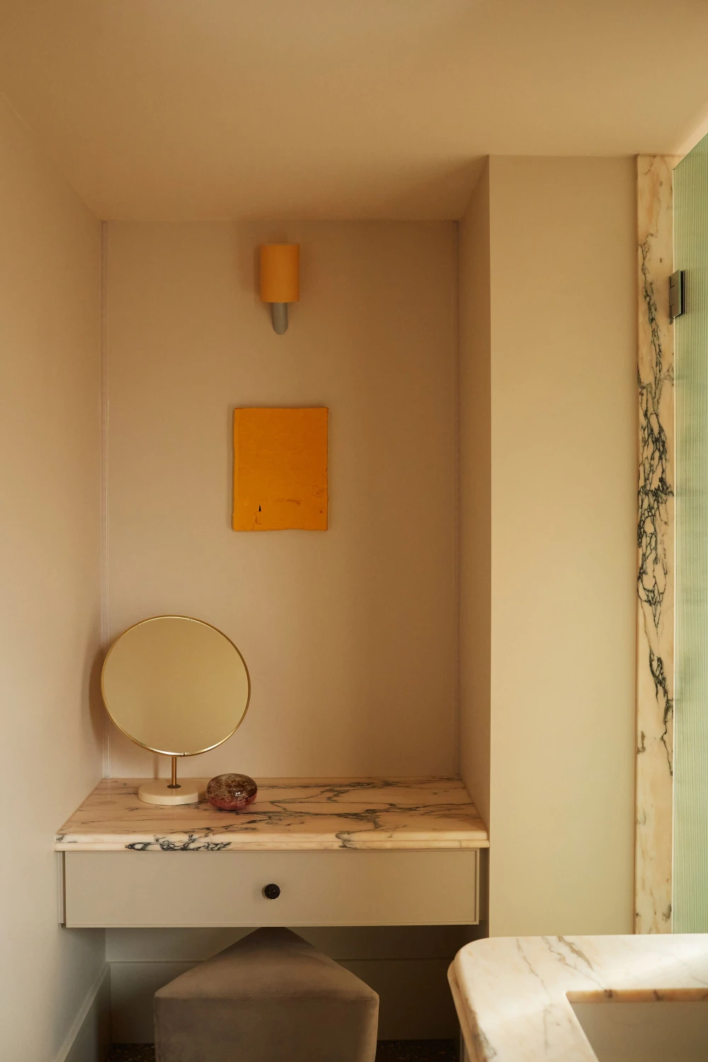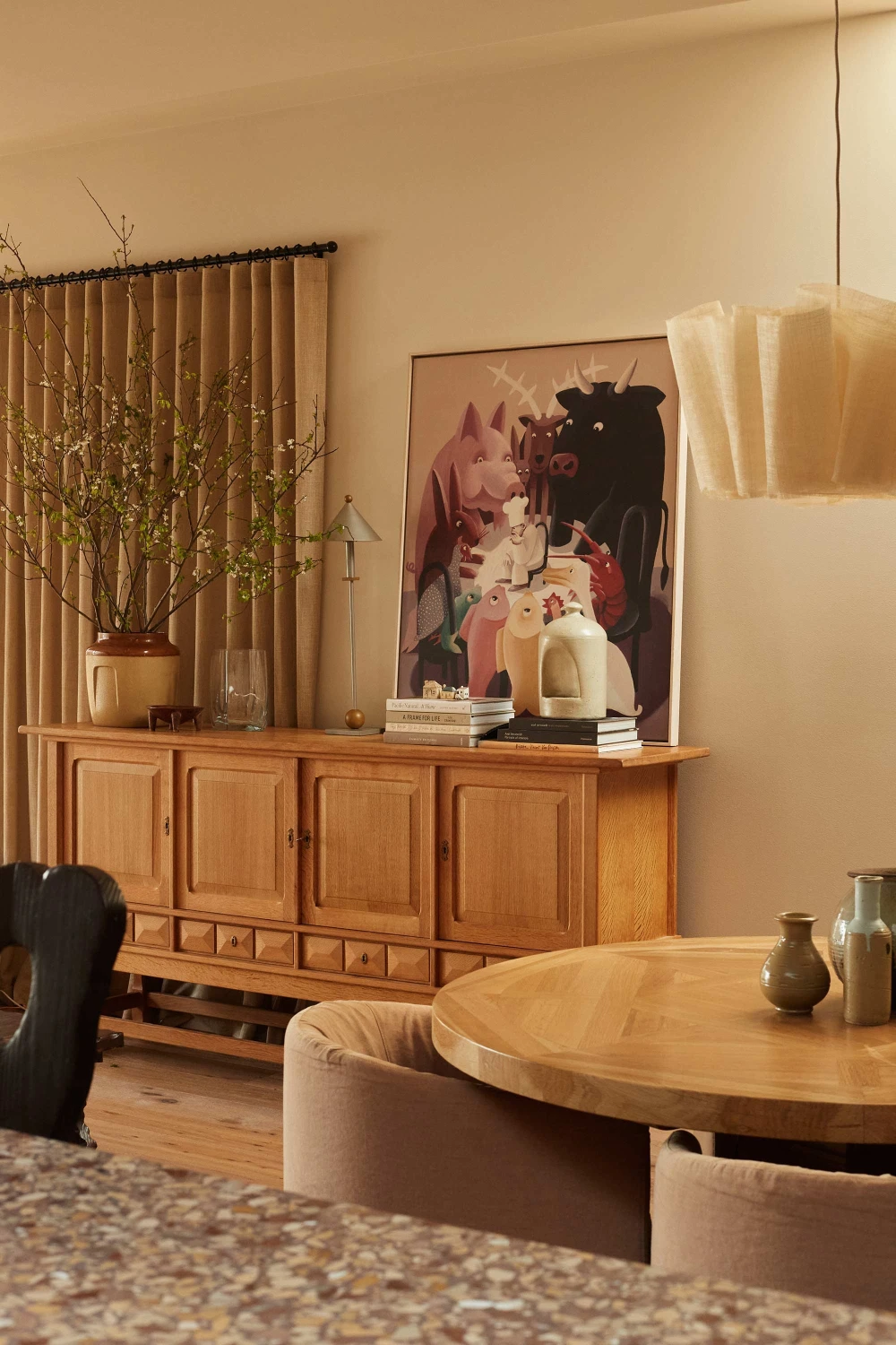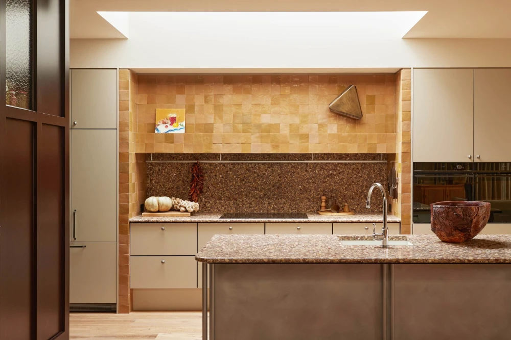 «Заказчики, владельцы строительной компании Ferne Built, — общительные люди, любят готовить и принимать гостей. Их дом должен был это отражать, быть живым и энергичным. Они подошли к проекту с четкими пожеланиями: полный отказ от белых стен, свобода самовыражения и пристальное внимание к деталям. Результатом стала согревающая палитра, построенная на теплых тонах — кремовом, табачном, цвете топленого масла, — с вкраплениями насыщенных цветов. О нейтральности не было и речи. Каждая комната рассматривалась как отдельная композиция, но с отсылками, которые повторяются по всему дому, будь то материалы, цвета или отделка».
