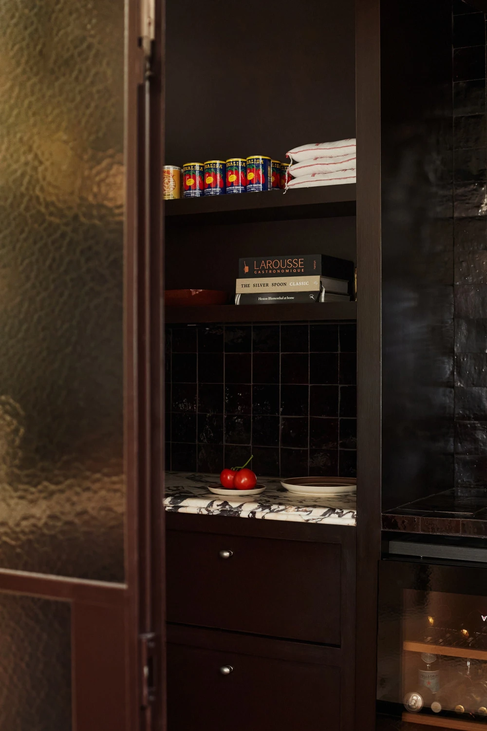 В самом центре жилого пространства расположен «куб-кладовая», вокруг которого сосредоточены повседневные ритуалы семьи. Этот закрытый объем не только служит местом для приготовления пищи и скрытой кладовой, но и является ключевым архитектурным элементом. «Темная кладовая позволяет кухне выступать в роли социального центра, объединяющего людей, — отмечает Серни. — Вы можете закрыть ее, спрятать беспорядок, связанный с готовкой, и при этом жилое пространство сохранит свою теплоту».
