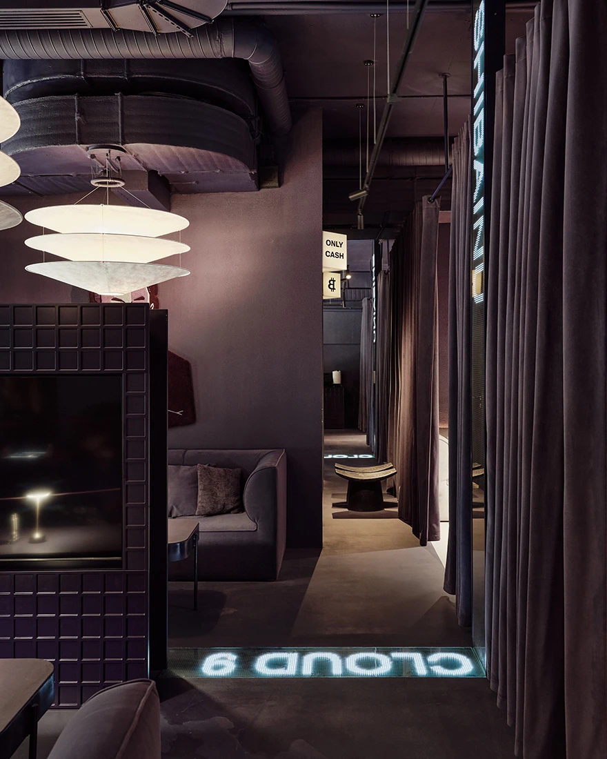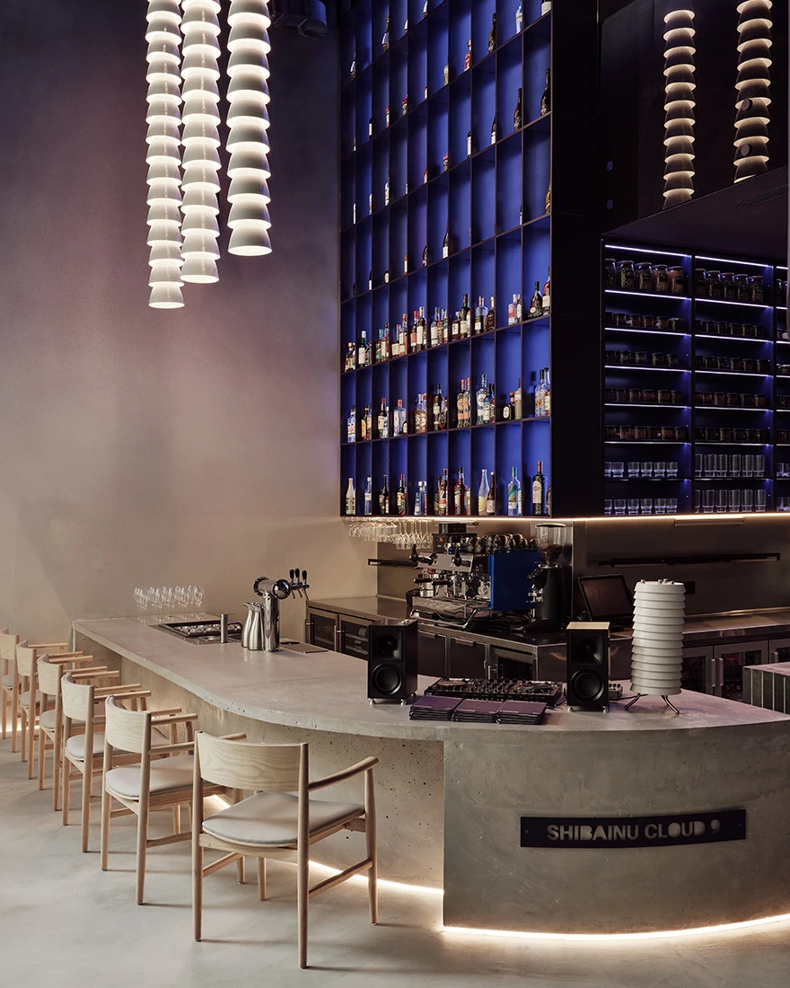 Дизайнер Алина Цауня оформила интерьер ресторана Shibainu Cloud 9 площадью 170 кв. метров в районе Динамо. Идея отражает японскую философию и основана на минималистичных современных формах и смелом цветовом решении. «В айдентике и интерьере можно увидеть образ собаки, который отражает связь с криптовалютой Shiba Inu. Это акцент на технологичное современное время», — говорит автор проекта.