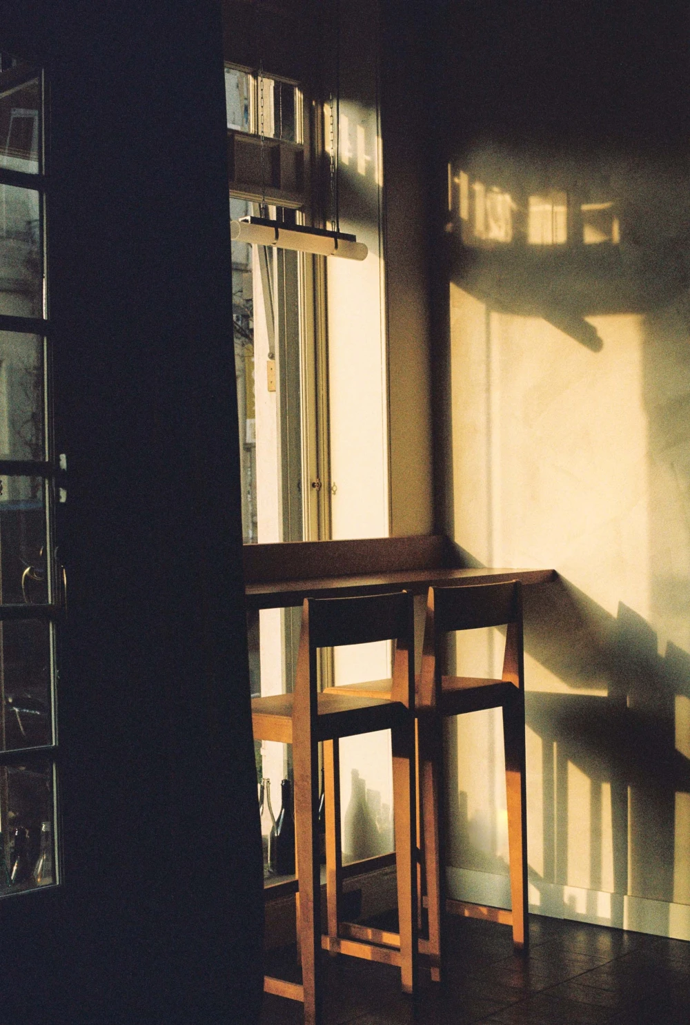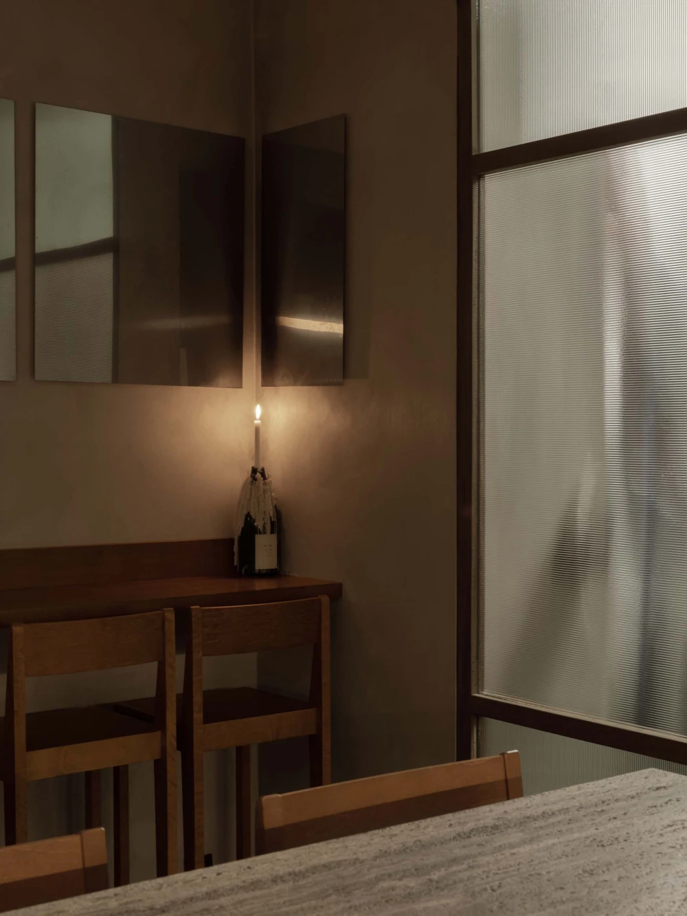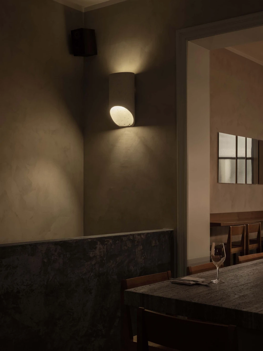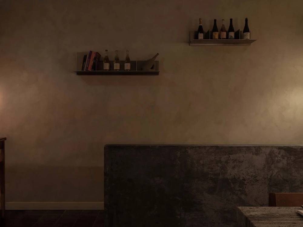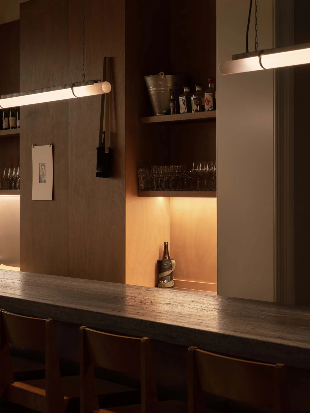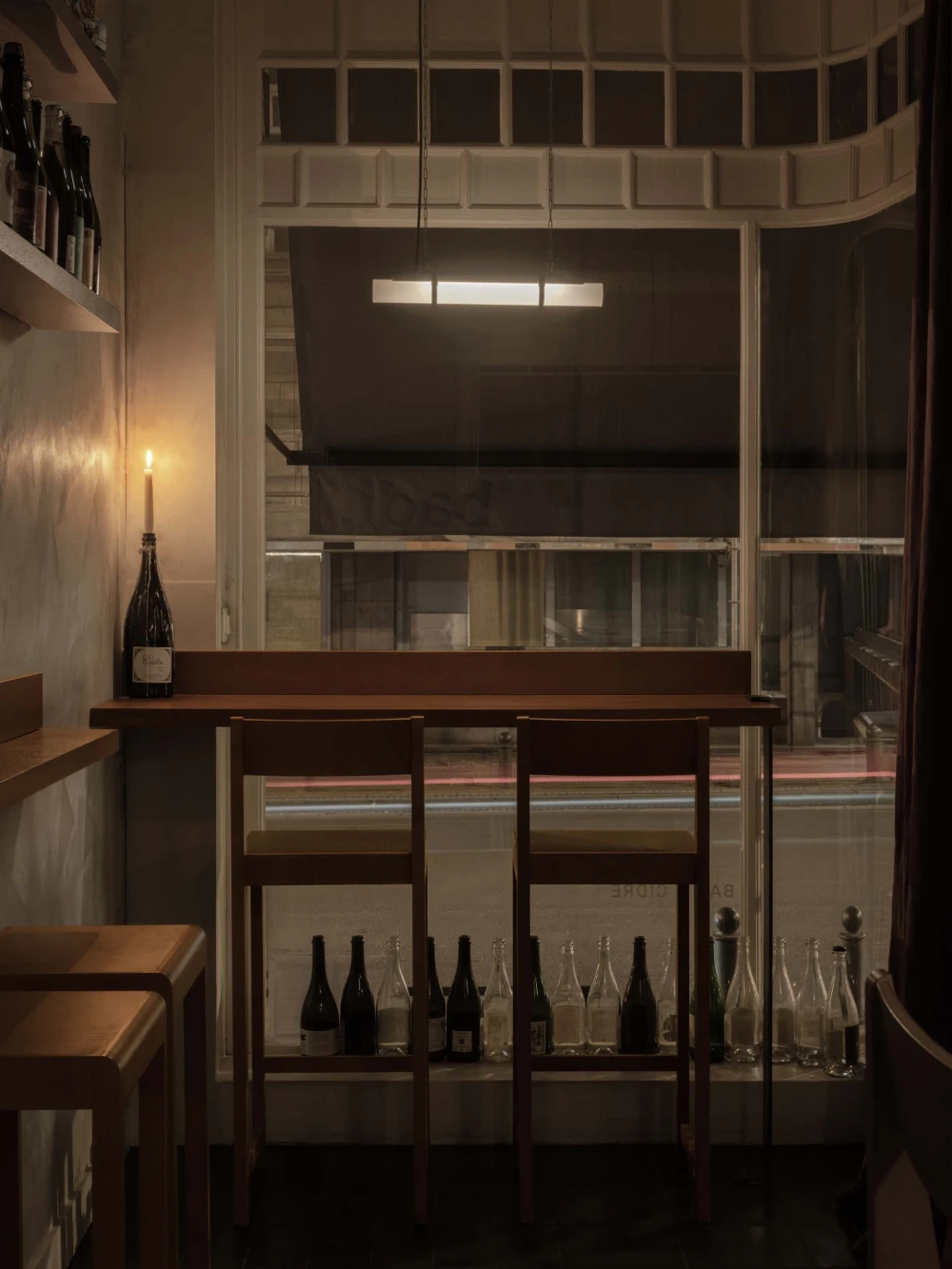 Пространство ресторана организовано вокруг большой центральной стойки, которая предлагает гостям разделить трапезу, — это решение было подсказано опытом работы дуэта в Японии. В интерьере также присутствуют предметы бельгийского дизайна: так, здесь можно заметить светильники Barbier Bouvet и стулья FRAMA. Камерное и интимное пространство отражает подход владельцев к кухне и работе с продуктами, предлагая посетителям новый гастрономический и эстетический опыт.