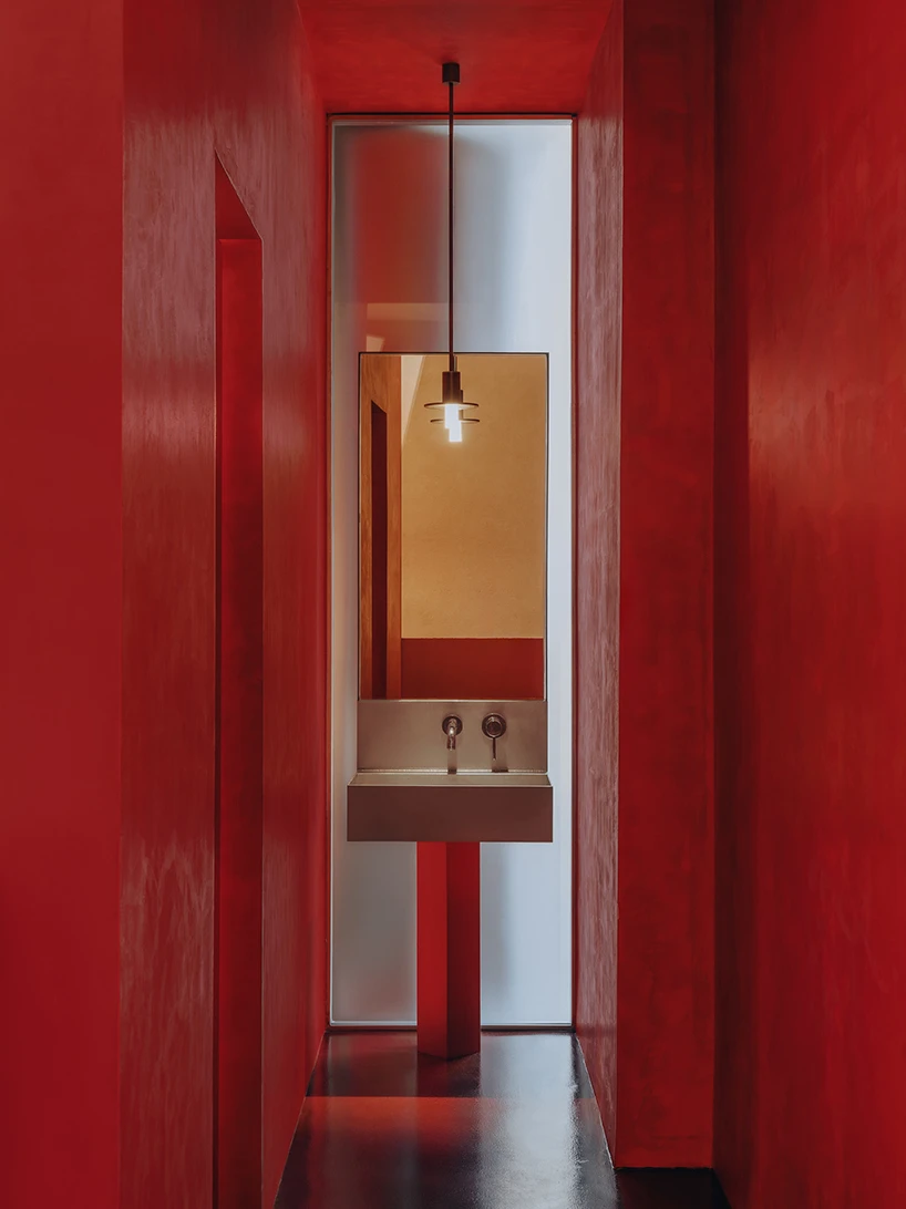 Планировка избегает линейности: основные зоны слегка развернуты относительно друг друга, а четыре колонны помогают зонировать пространство и задавать траекторию движения гостей. Эти решения создают чередование открытых и более камерных пространств, за счет чего тут легко реализовать различные сценарии использования. Идея пространственной энергии реализована и через встроенные механические элементы: так, столы могут перемещаться по рельсам, «выезжая» в хорошую погоду на улицу.