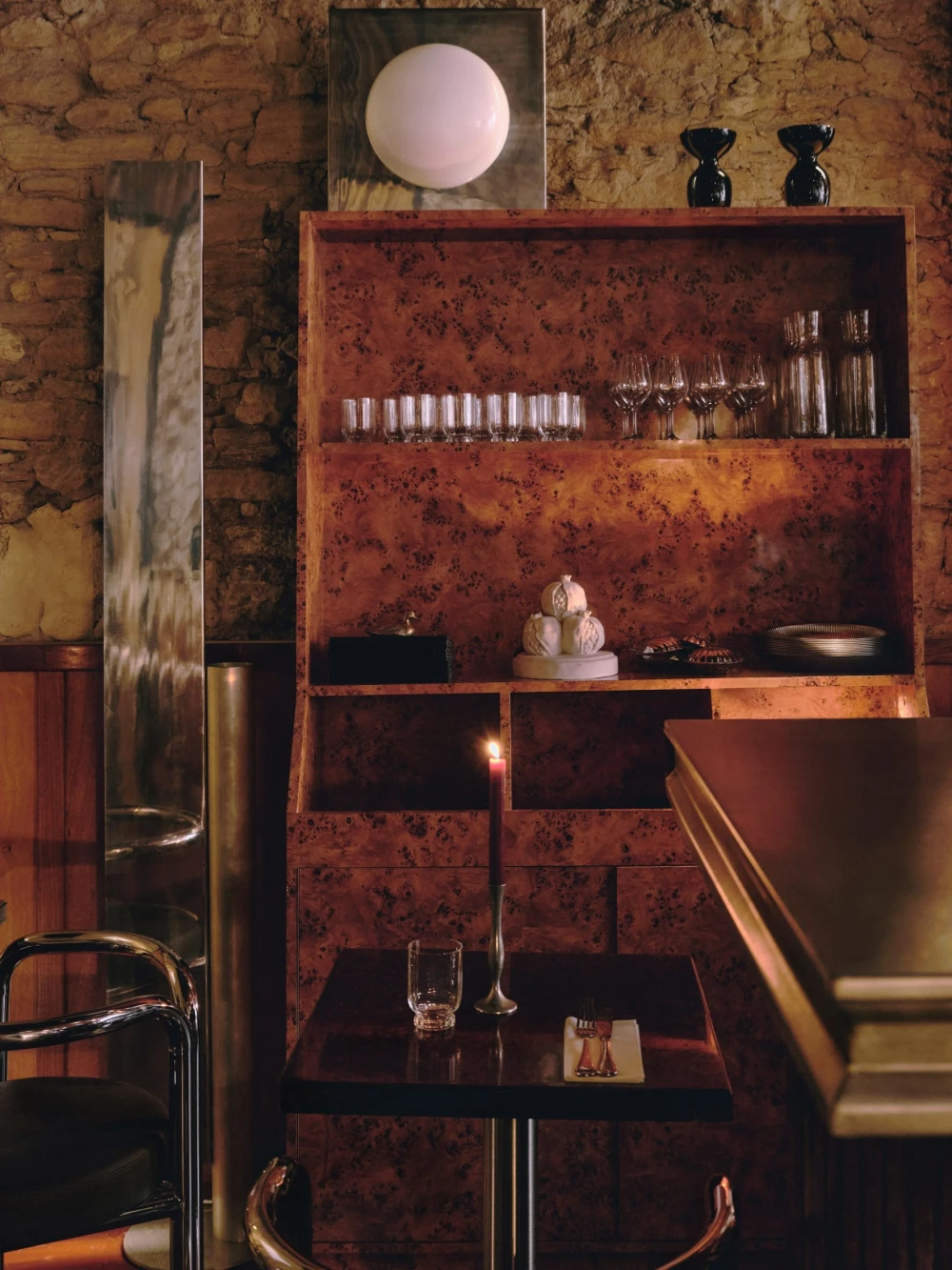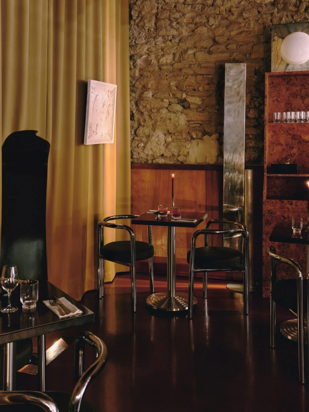Dévo призван был стать местом, где «к еде относятся серьезно, но никогда не чопорно». Пространство ресторана организовано как единый зал, заключенный в массивные каменные стены. Главным источником вдохновения для четы Ше послужили итальянские бары 1970-х годов с элегантными гламурными интерьерами, где людей объединяют социальные ритуалы. «Эти пространства создавались для повседневной жизни — живого общения, кофе, аперитива, а не ради зрелищного дизайна», — говорит Мелисса Ше.
