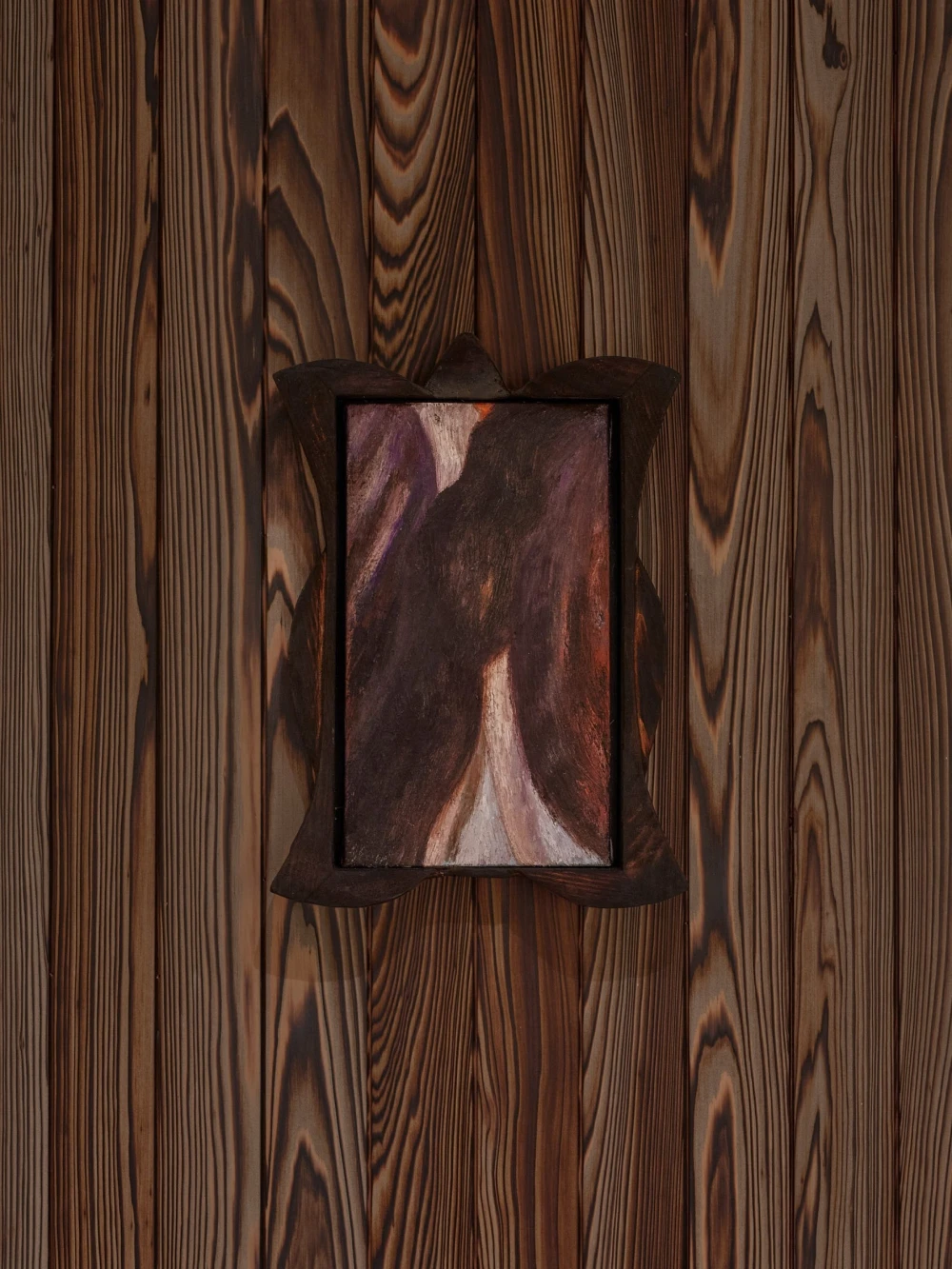 Среди акцентов — три настенных светильника из стекловолокна, созданных корейским художником Миндже Кима. Их формы балансируют между органикой и геометрией, создавая мягкий скульптурный рельеф на темных стенах. В интерьере также есть винтажные предметы — керамическая лампа 1970-х годов и работа американского художника Эвера Болдуина в резной раме из обожженного дерева. «Такие штрихи придают интерьеру глубину, историю, индивидуальность, создают ощущение многослойности и собранности», — отмечает Уэстлер.