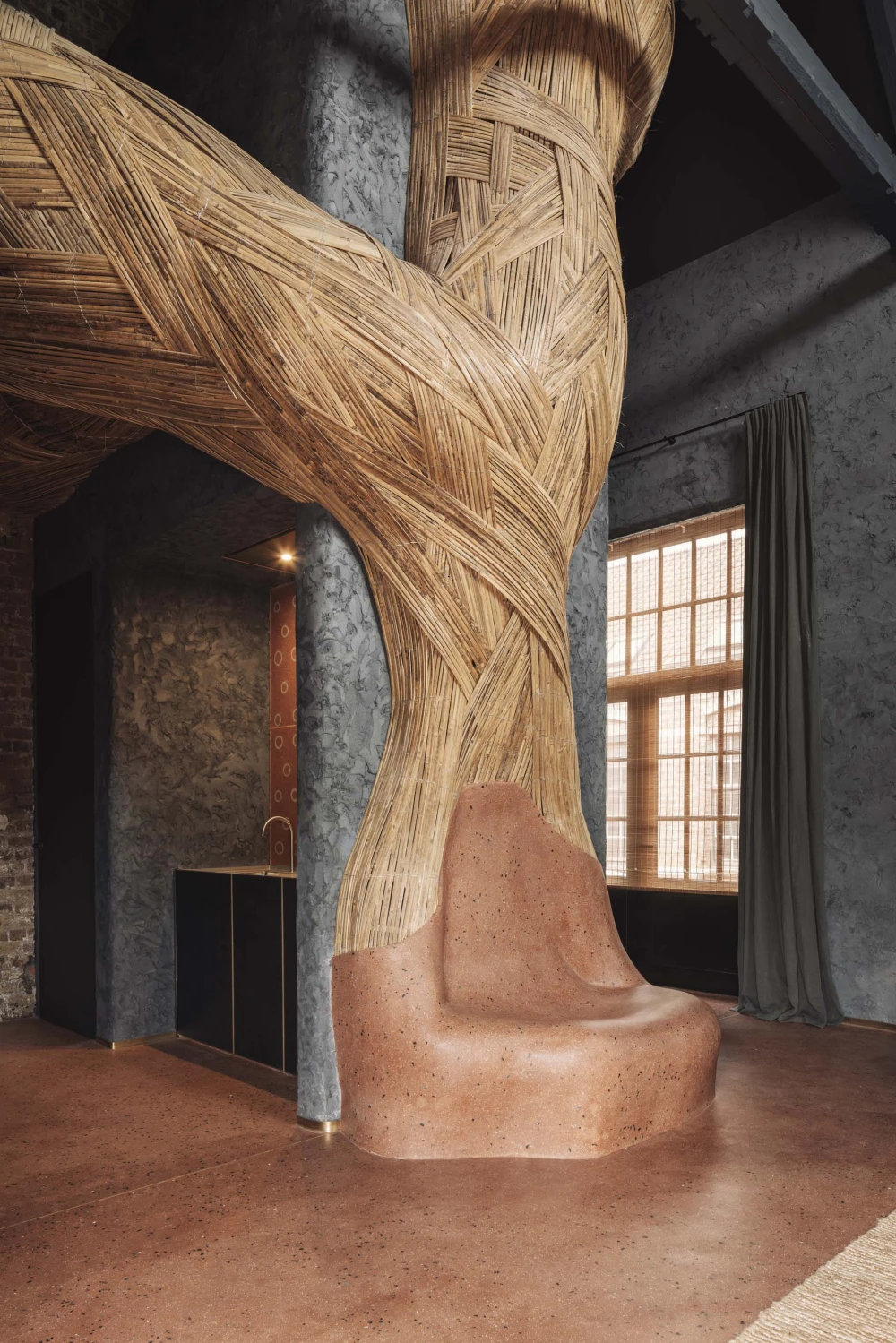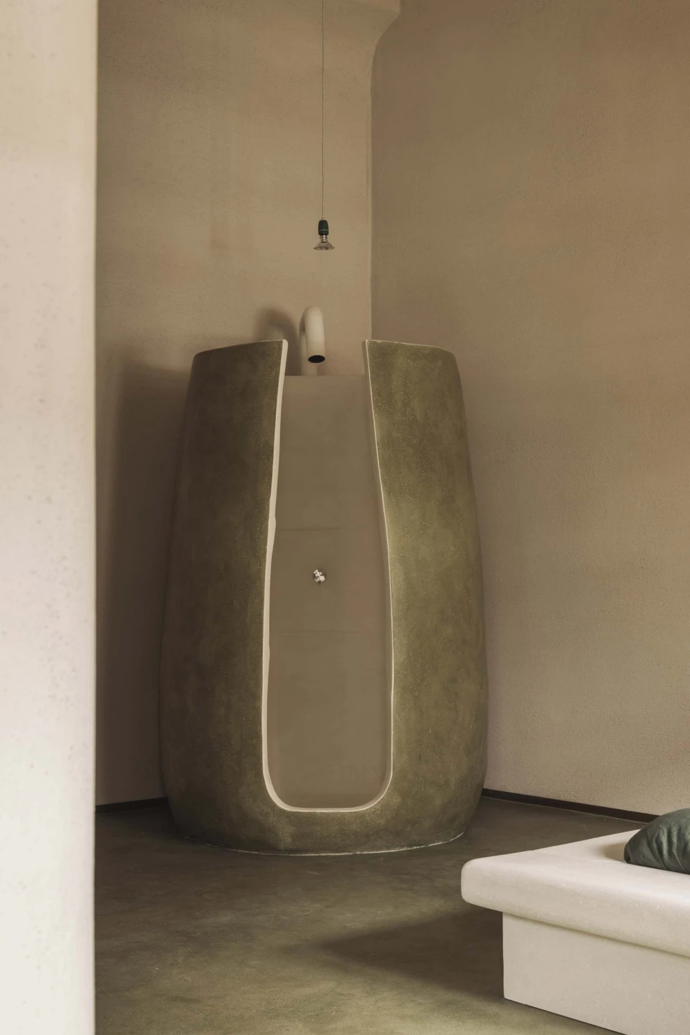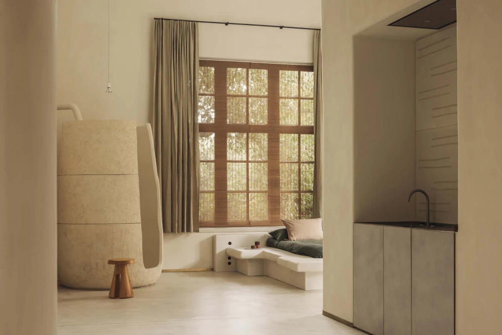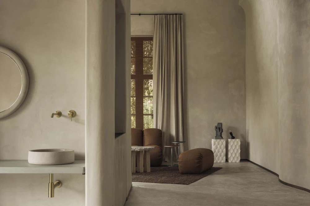 Jonojé Luxury Suites включает шесть сьютов, каждый площадью около 75 кв. метров. Бельгийская студия получила известность благодаря проектам с глиной и творческому переосмыслению органических форм, а коллекция созданных вручную керамических ванн, изготовленных из цельных блоков глины, принесла им международную известность. Неудивительно, что и в гостинице они сделали акцент на ванных комнатах, превратив их в полноценные спа-пространства с удивительными формами и фактурами.