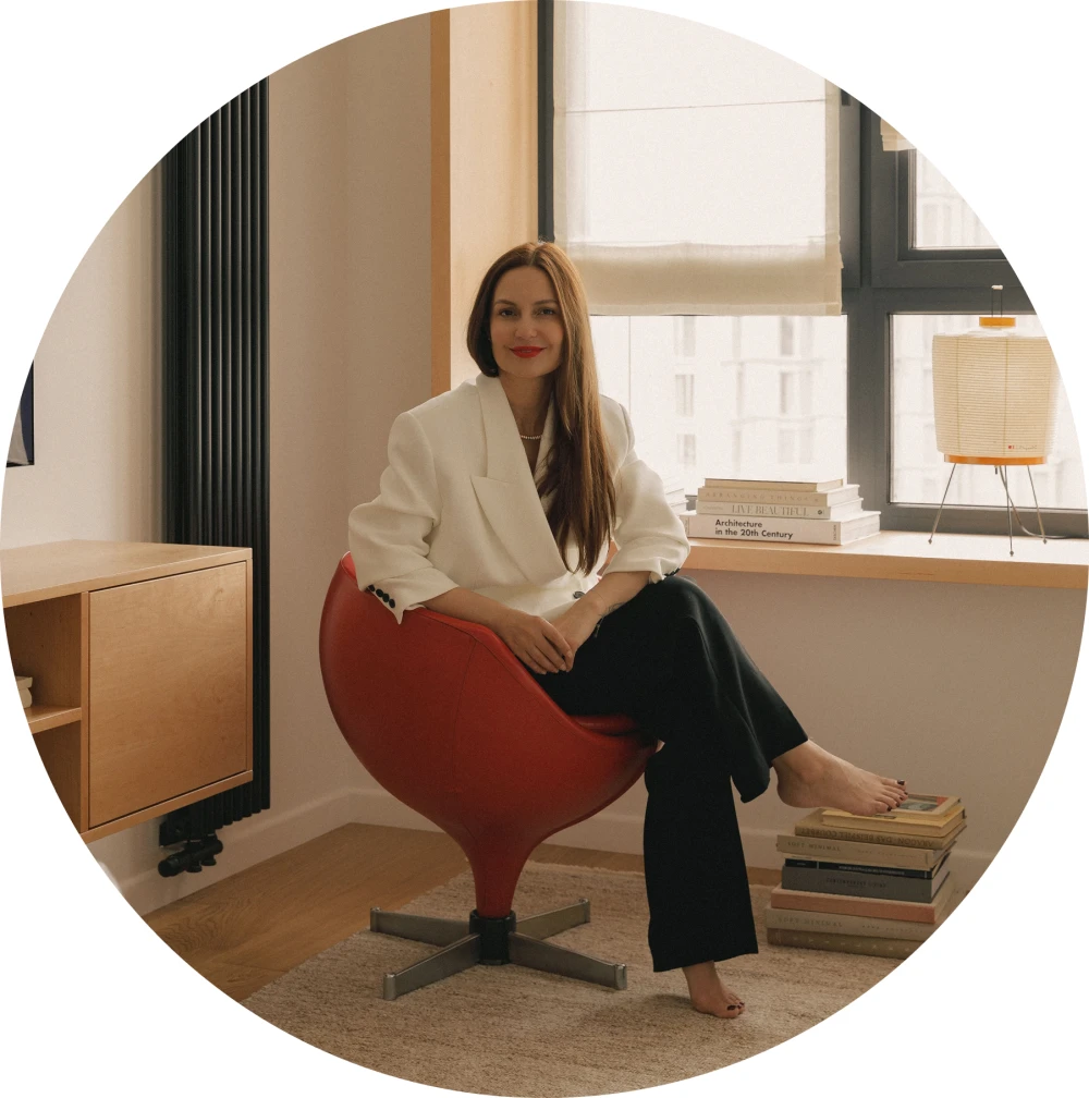 Образ пространства завершают винтажные детали, которые словно сами находили дизайнера. «Например, когда мы увидели красное кожаное кресло Пьера Гариша, сразу единогласно решили: оно наше. Знаковые светильники от Louis Poulsen и Исаму Ногучи делают интерьер вневременным. Фильмы штрихом стали фотоработы хозяйки — атмосферные кадры, снятые на пленку во время жизни в Японии».