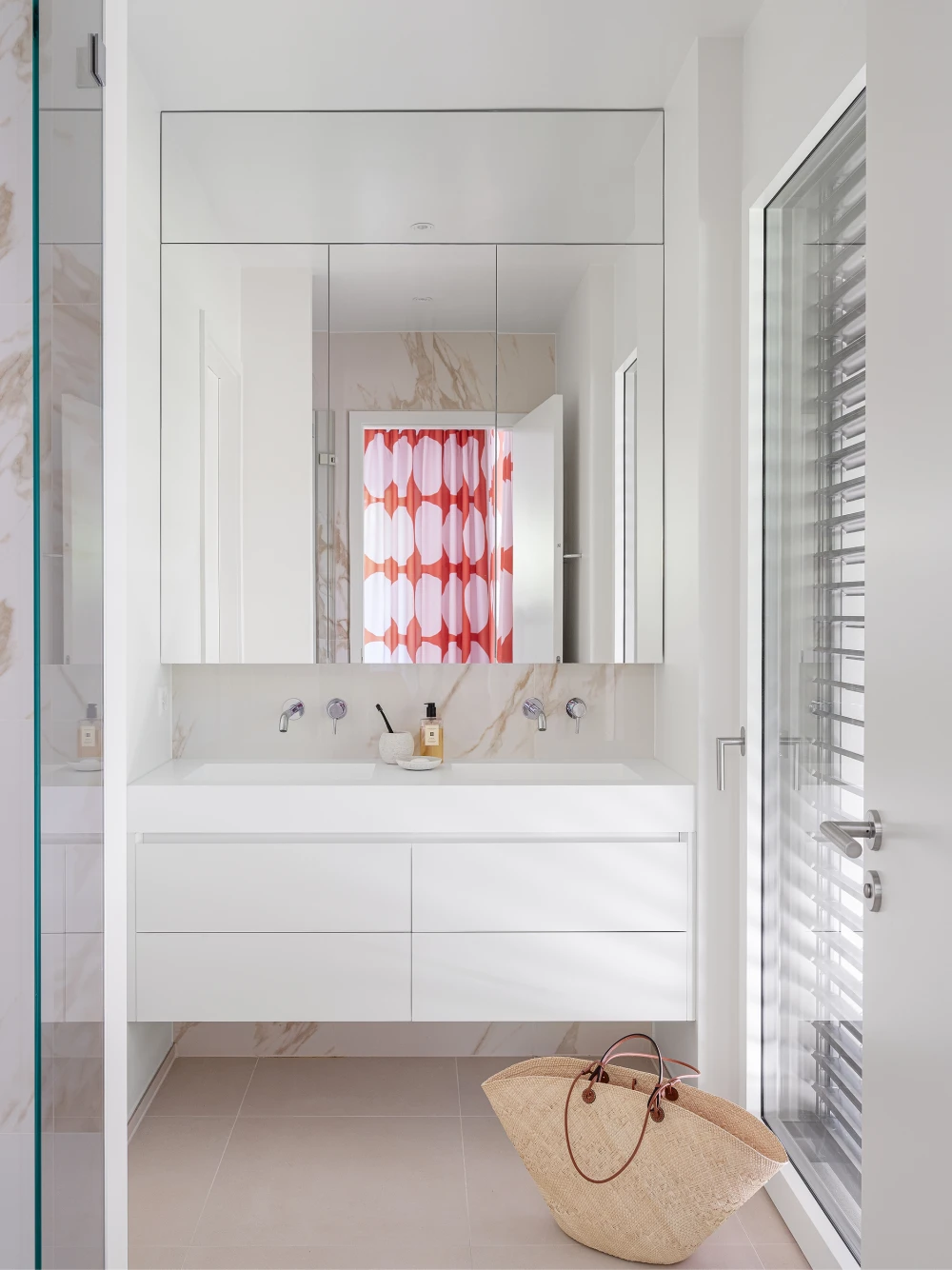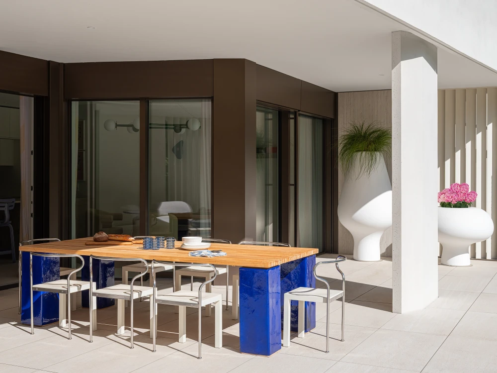«Выразительность пространству предполагалось придать через предметы интерьера: так как все функциональные задачи уже были качественно решены, мы не планировали менять существующую отделку. Хорошая нейтральная база была не единственным бонусом — вместе с ней нам досталась отличная планировка с просторной зоной гостиной-столовой и тремя компактными спальнями, каждая со своим выходом в приватный двор. А еще — роскошная крытая терраса. В мягком климате Женевы террасу используют круглый год, поэтому мы рассматривали ее как полноценную жилую зону».