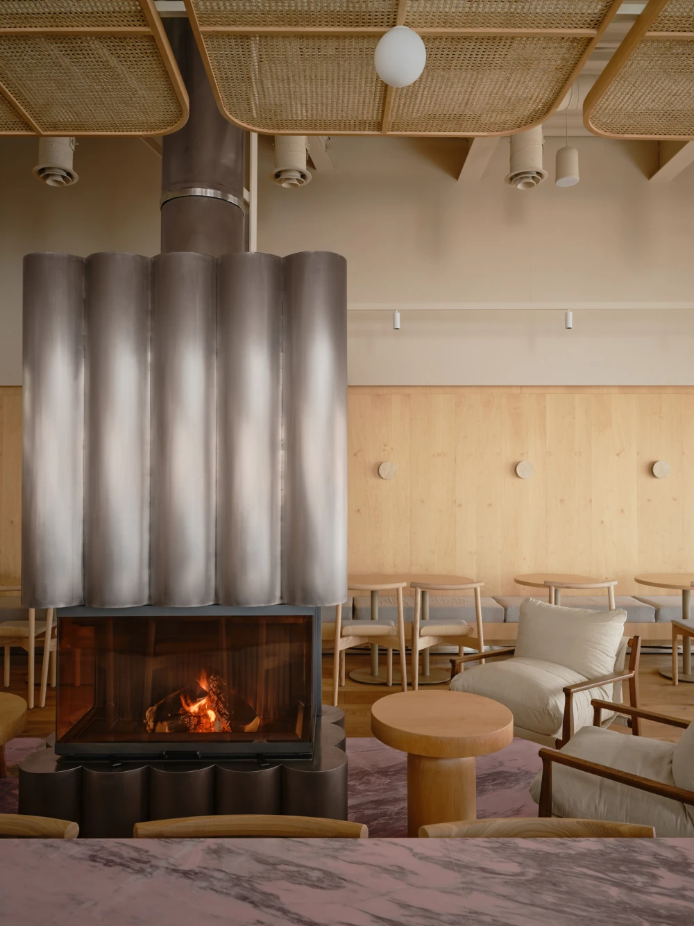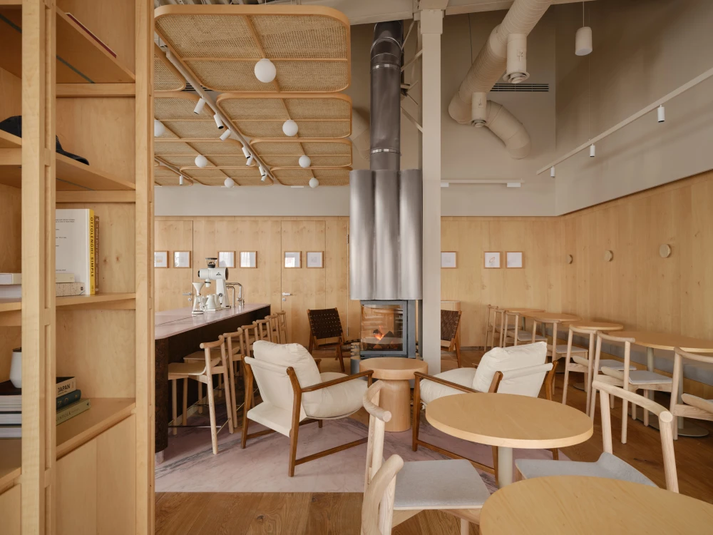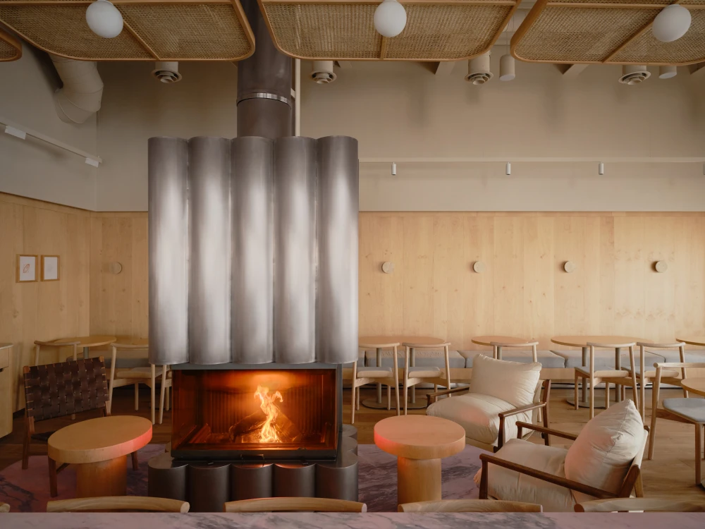 Команда бюро Le Atelier оформила на Новой Риге кафе ABC Coffee Roasters, пространство в концепции all‑day dining — место, где можно провести целый день, как в гостеприимном загородном доме у хороших друзей. Главный смысловой акцент пространства — настоящий дровяной камин по авторскому проекту архитекторов — собирает вокруг себя интерьер, наполняя его теплым естественным светом и приятным ароматом горящего дерева.