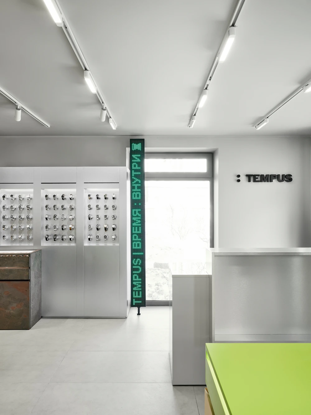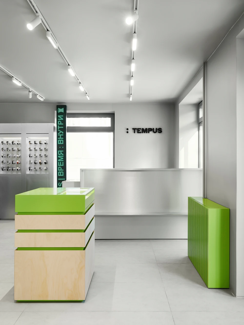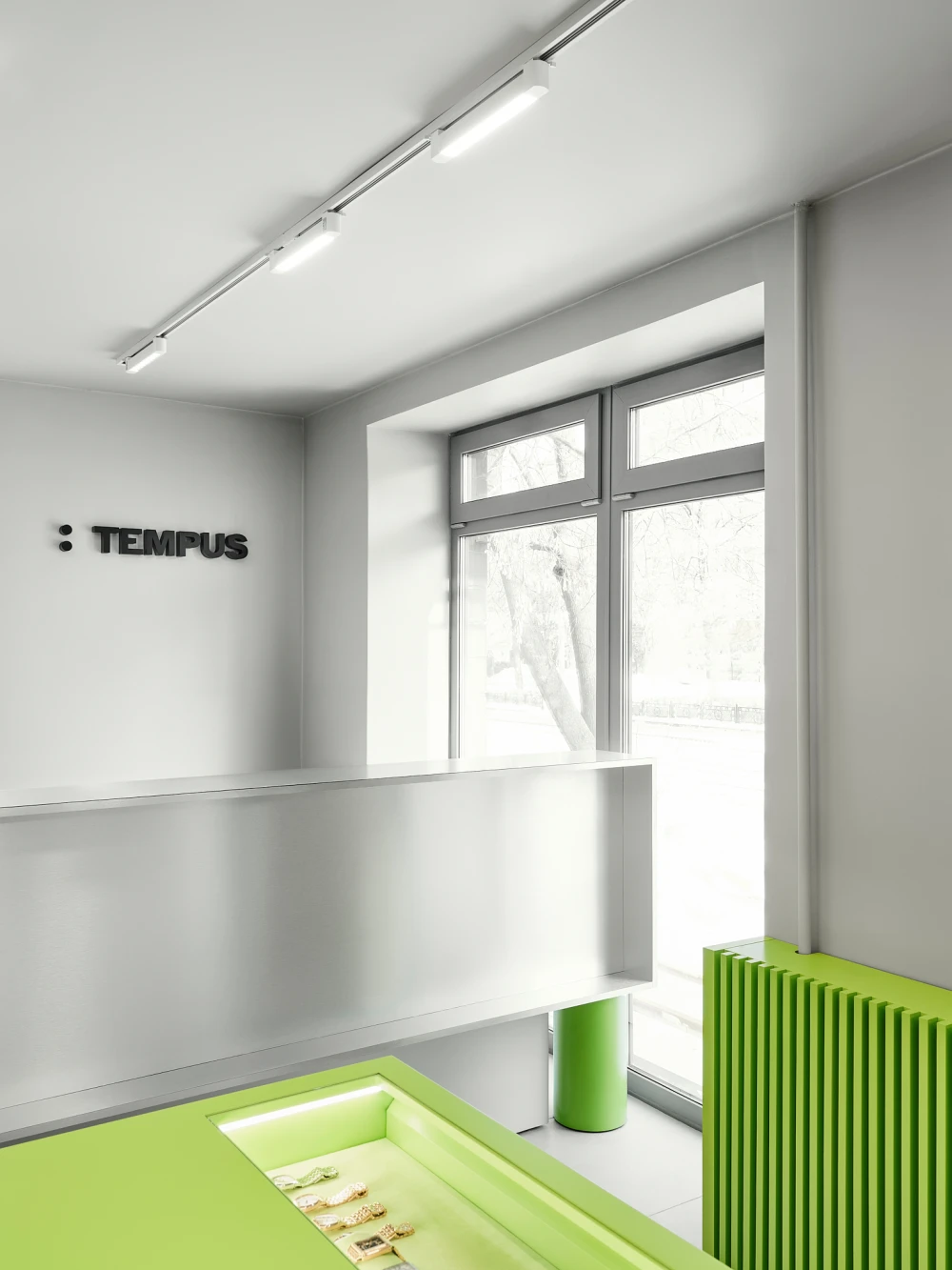 Проектируя интерьер шоурума Tempus, архитектор Анастасия Колчина и Sinitsa Buro ориентировались на идею платформы бренда. Создатели проекта предлагают отказаться от традиционного восприятия часов как статусного объекта и рассматривать их как аксессуар, отражающий настроение, контекст и образ жизни.