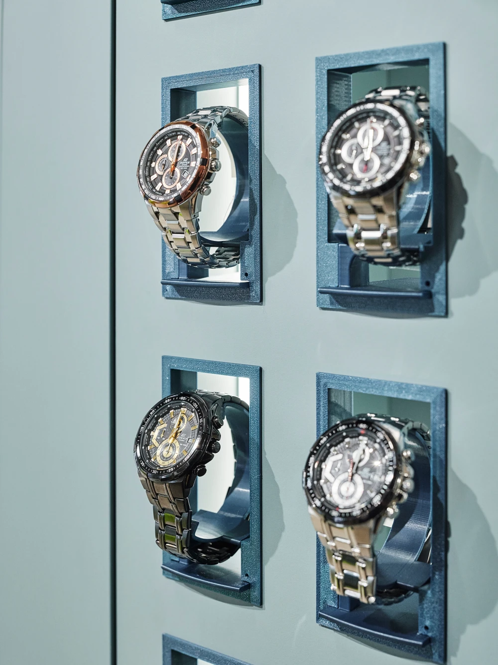 «Особое внимание было уделено разработке держателей для часов. После серии экспериментов было принято решение изготавливать их на 3D- принтере. Это позволило создать точные лаконичные формы, идеально соответствующие логике экспозиции. Работа с этой технологией стала важным этапом для команды и открыла новые возможности для будущих проектов».